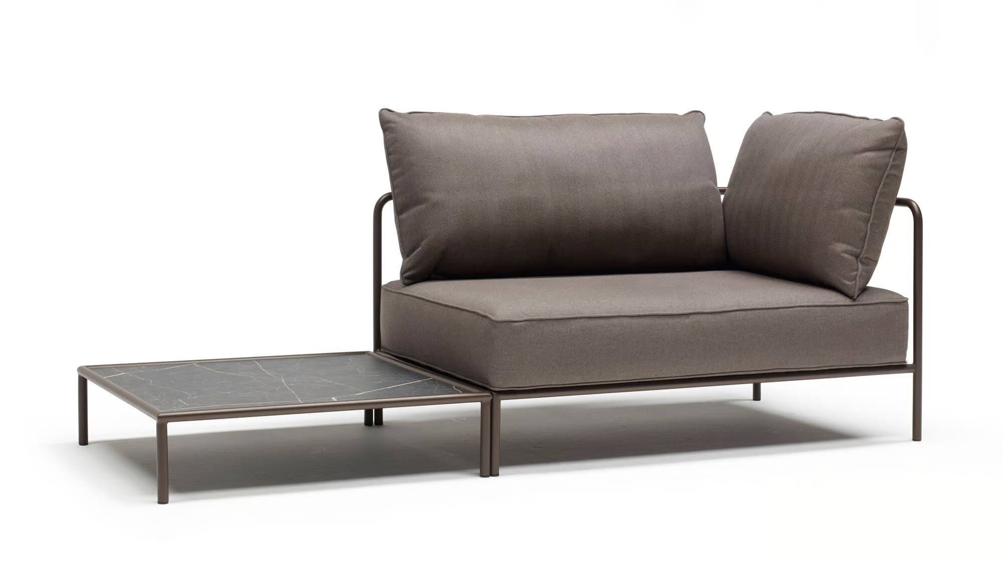 A FLAP a Meneghello Paolelli által tervezett első moduláris kárpitozott bútorcsalád, amely a beltéri és kültéri terek közötti határokat mossa el. Az ülőelemek kombinálhatók támasztó felületekkel, így sokoldalú elrendezéseket hozva létre. A hátsó párnák megtámasztására a fő szerkezet háttámlájához repülőgép szárnyakra emlékeztető elemek csatlakoznak. A FLAP egy moduláris kerti fotel, amely fém vázzal rendelkezik, és több színben elérhető: len, galambszürke, antracit, mokka és terrakotta. Széles választékban kapható kültéri szövetekkel, ideális választás éttermek, kávézók, szállodák és más vendéglátóipari egységek számára, akik minőségi kültéri ülőgarnitúrákat keresnek.