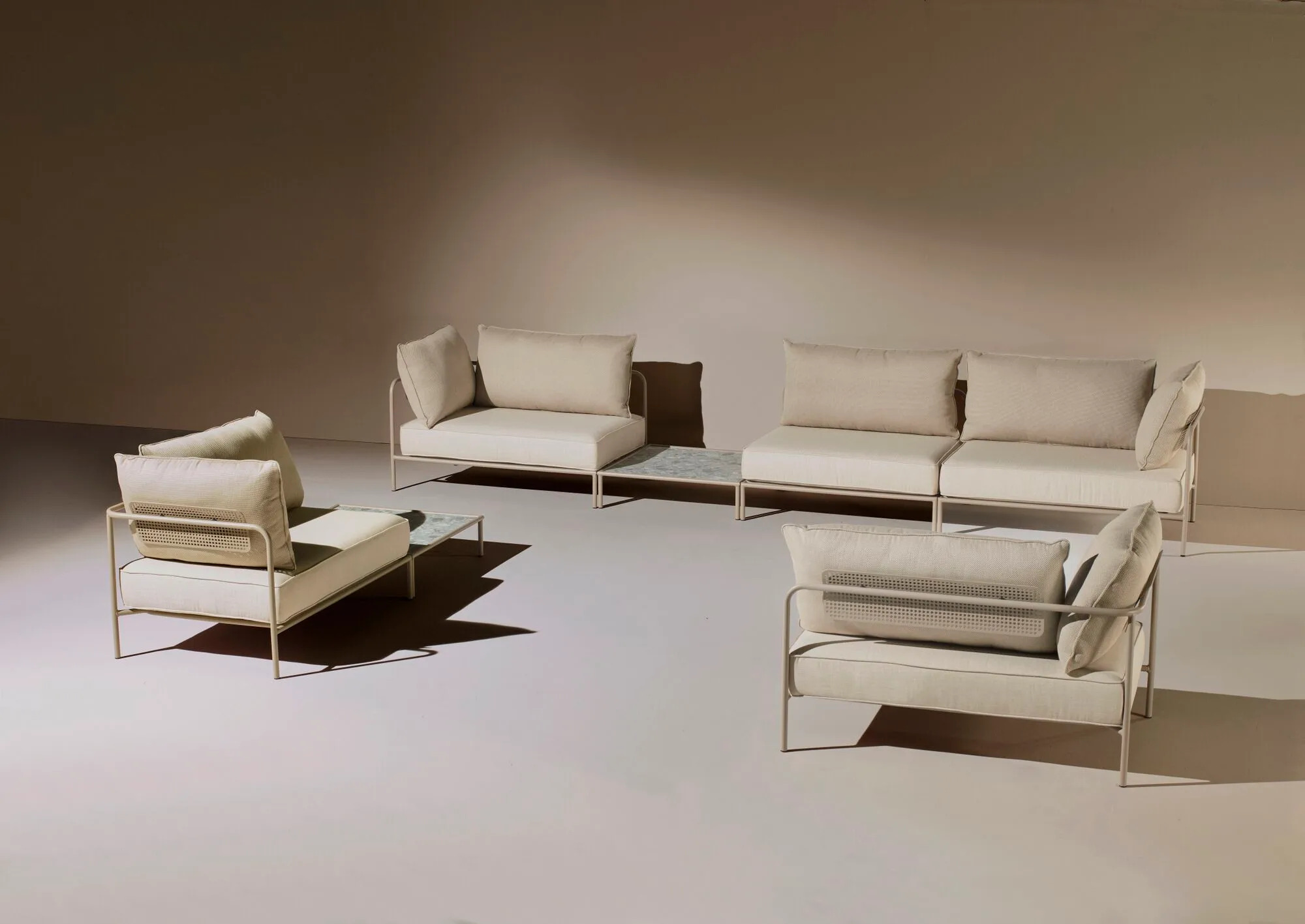 A Meneghello Paolelli által tervezett FLAP az első moduláris kárpitozott bútorcsalád, amely a kültéri ülőgarnitúrák világában új szintet képvisel. Az ülőelemek és a támasztó felületek kombinációja lehetővé teszi a beltéri és kültéri terek közötti határok elmosását. A hátsó párnák megtámasztására repülőgép szárnyakra emlékeztető elemek kerültek a fő szerkezet háttámlájára. A FLAP moduláris kanapé acél vázzal rendelkezik, amely len, galambszürke, antracit, mokka és terrakotta színekben kapható. Az akril anyagból készült párnák kifejezetten kültéri használatra lettek tervezve, így ideális választás kerti bútorok, kültéri székek és kanapék kialakításához.