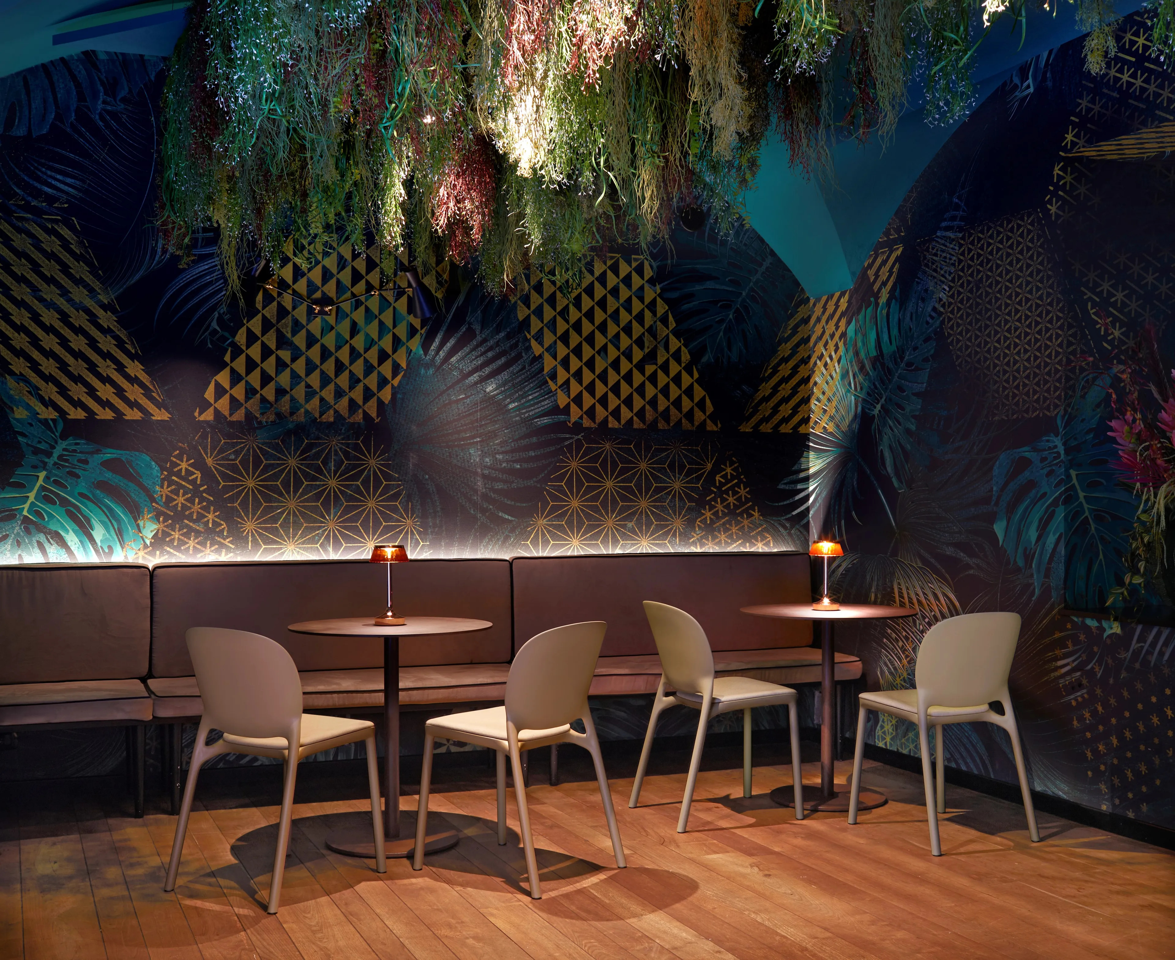 A HUG szék polipropilénből készült, integrált párnával. A tervezők egy különleges elemet alkottak meg: az ülés és a háttámla közötti sávot, amely harmonikus formáival biztosítja a kényelmet. Ez a szék ideális választás beltéri és kültéri használatra, követve azt a trendet, hogy mindkét környezetet azonos esztétikai elvek szerint rendezzük be. Két változatban érhető el: az egyik teljesen technopolimerből készült, amelyet a sáv mentén dombornyomott csíkos minta díszít, a másik pedig párnázott ülőfelülettel és szövettel borított sávval rendelkezik a fokozott kényelem érdekében. A HUG kollekció a Meneghello Paolelli és az S•CAB közötti együttműködés eredménye, amely a használhatóság és fenntarthatóság kérdéseire is választ ad. A technopolimer monocoque szerkezet rugalmas rendszert alkot, amely különböző szék- és karosszék-konfigurációkat tesz lehetővé. Az organikus folytonosságot biztosító sáv összeköti az ülőfelületet és a háttámlát, új esztétikát és funkcionalitást teremtve.