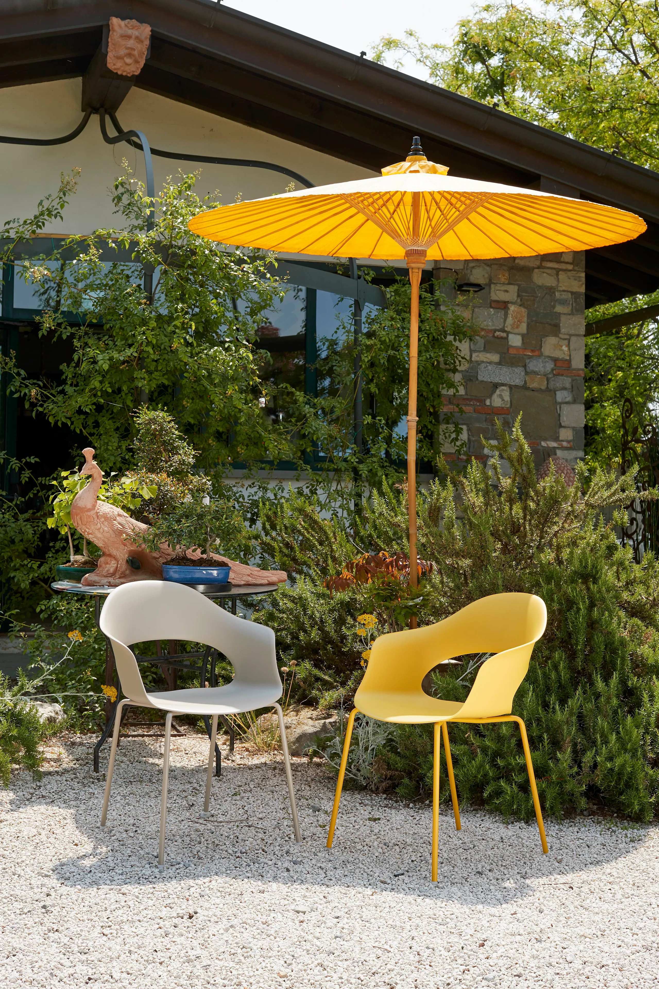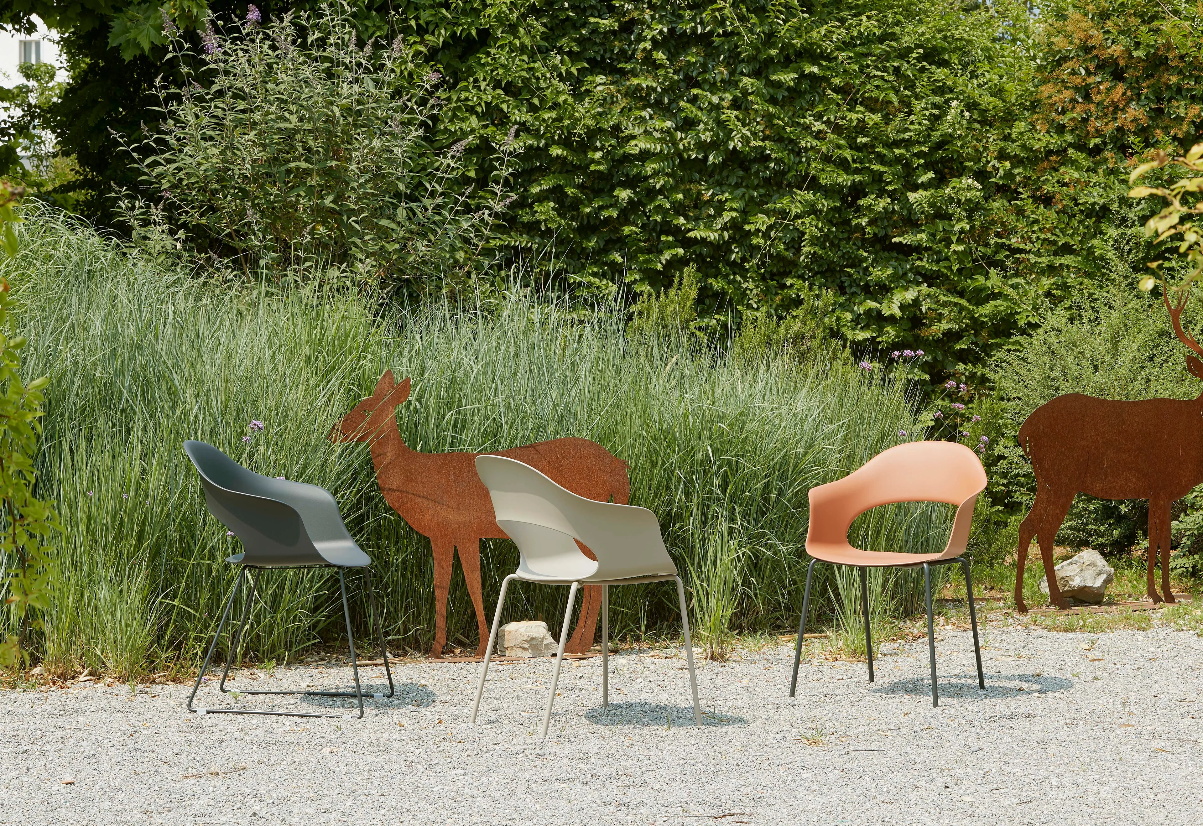 A LADY B asztal és szék kollekció sokoldalúságával tűnik ki, különböző keretkialakításokkal, mint például a fekete nikkel és a szatén sárgaréz. A technopolimer vagy párnázott testtel rendelkező design székek ideálisak irodai asztalokhoz, étkezőasztalokhoz és modern asztalokhoz. A GO GREEN verzióban elérhető színek: galambszürke, antracitszürke és olívazöld. A kollekció darabjai újrahasznosított műanyagból készülnek, amelyet életciklusuk végén lévő termékek és hulladékok regenerálásával állítanak elő, megújuló energiaforrások felhasználásával. Ez a fenntartható megközelítés csökkenti az új műanyag környezetbe kerülését, miközben a potenciálisan szennyező hulladékot is hasznosítja. A LADY B ideális választás kávézó székekhez, éttermekhez és középületekhez.