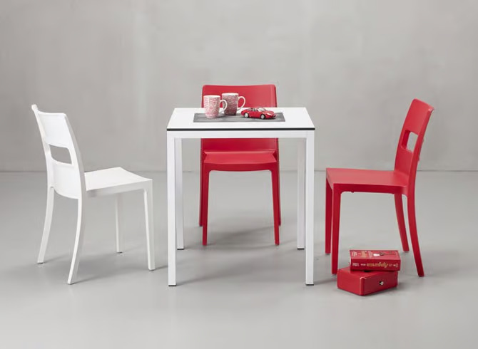 A MIRTO moduláris étkezőasztal sokoldalúságával tűnik ki, ideális választás irodák, éttermek, kávézók, oktatási intézmények és középületek számára. A drótvázas asztallap lehetővé teszi az asztalok tökéletes illeszkedését, helytakarékos megoldást nyújtva. Az asztal letisztult formavilága a fehér és antracit kompakt laminált lapok éles vonalaival hívja fel magára a figyelmet, négyzet vagy téglalap alakban elérhető. Stabilitása és könnyű rakásolhatósága révén harmonikusan illeszkedik a SCAB Design kollekció design székeihez. A porszórt acélváz és a négy állítható láb biztosítja a tartósságot és a stabilitást, legyen szó irodai asztalról vagy modern asztalokról kávézókban.