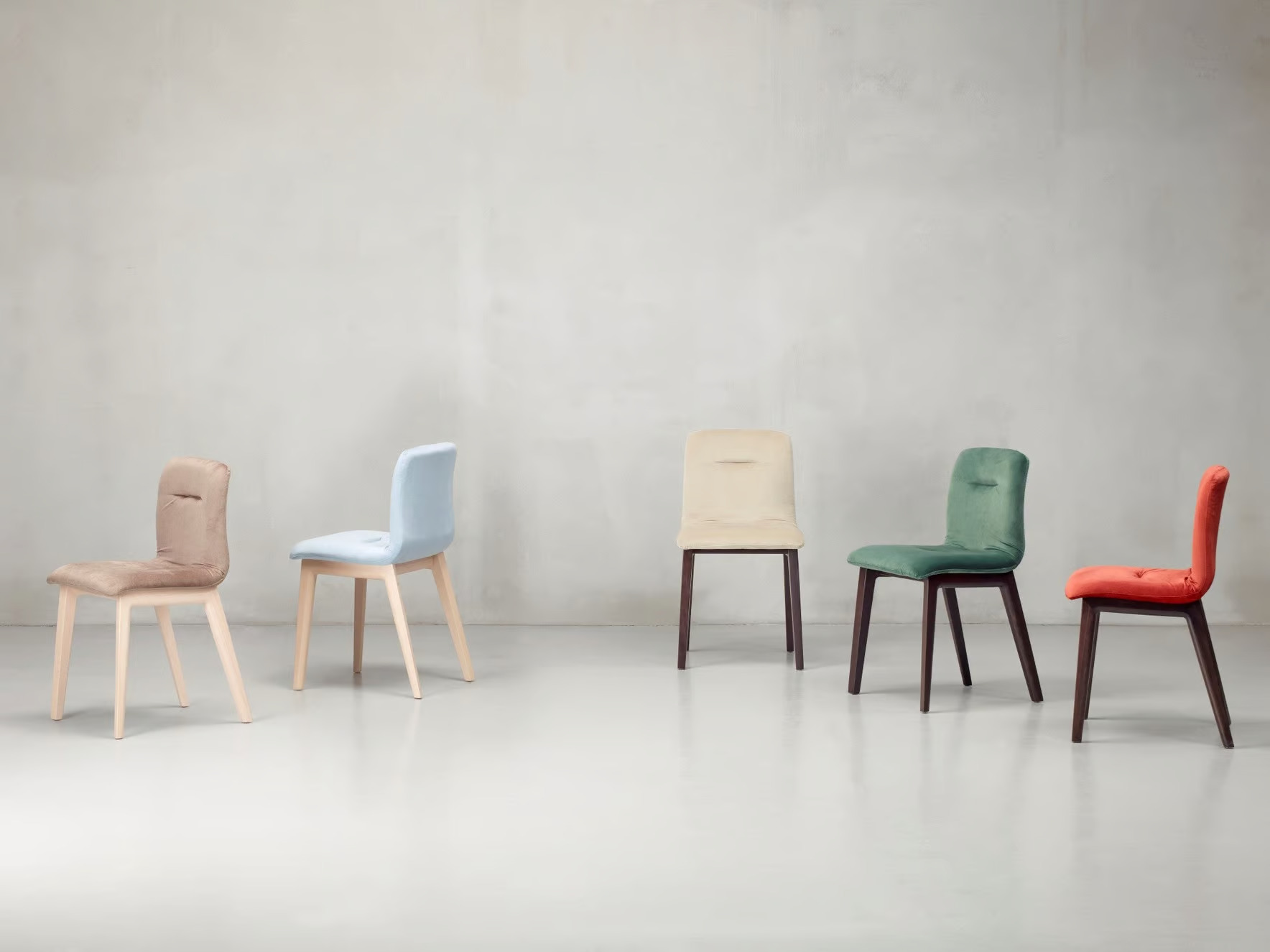 A Natural Alice Pop kollekció két különböző stílust ötvöz: a modern racionalizmust és a meleg, megnyugtató esztétikát. A masszív bükkfa váz, amely választható fehérített vagy wenge kivitelben, egy technopolimer maggal ellátott, párnázott héjat tart, amely bársonnyal, lángálló bársonnyal vagy műbőrrel van kárpitozva. Az Alice Pop fém változata karcsú, de erős acéllábakkal rendelkezik, szatén sárgaréz vagy antracit felülettel, megőrizve az egyszerű eleganciát. Ideális választás étkezőasztalokhoz, irodai asztalokhoz, modern asztalokhoz, valamint kávézó székekhez, mivel könnyedén alkalmazkodik bármilyen környezethez, legyen az iroda, étterem vagy konferenciaterem.