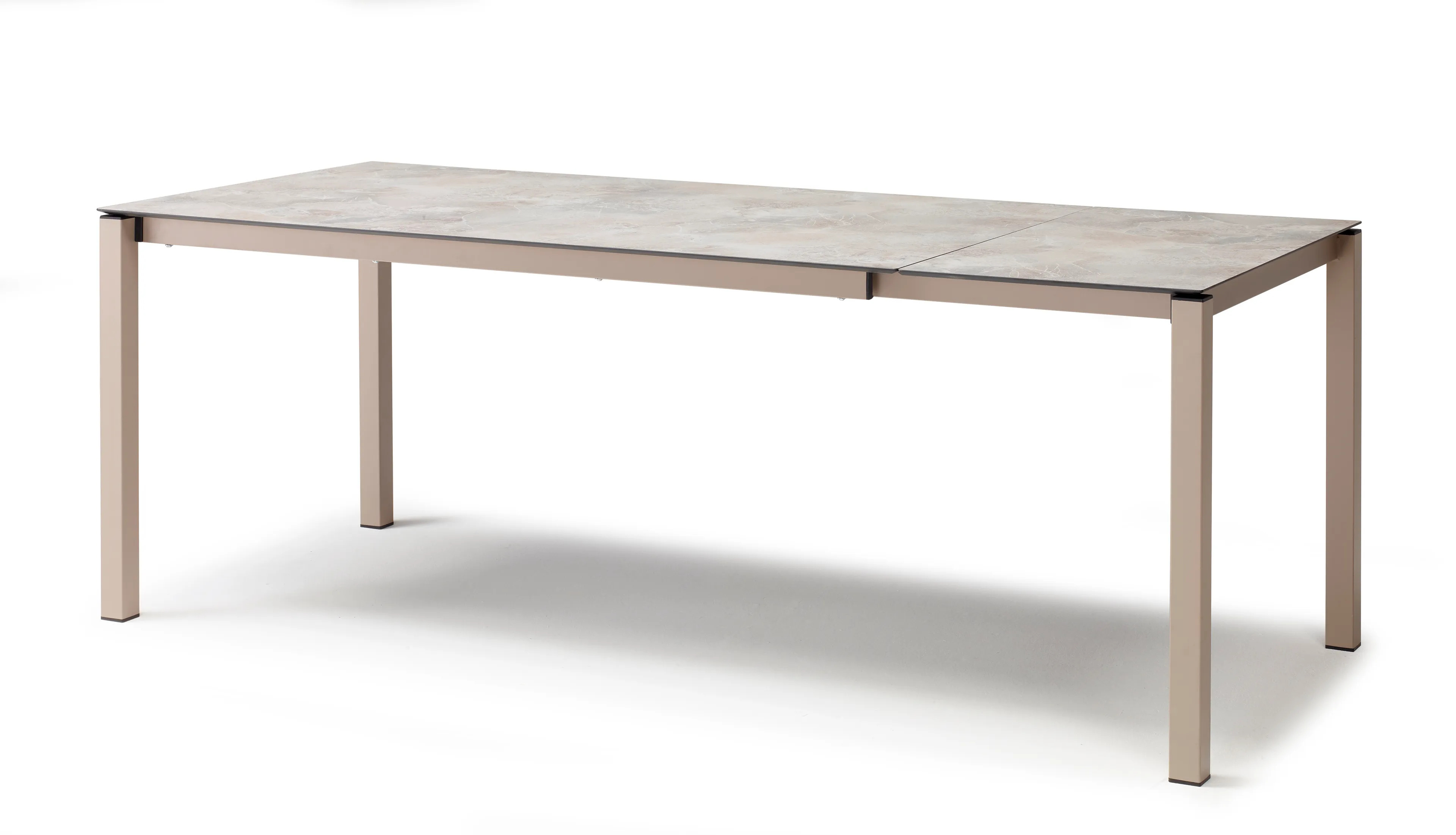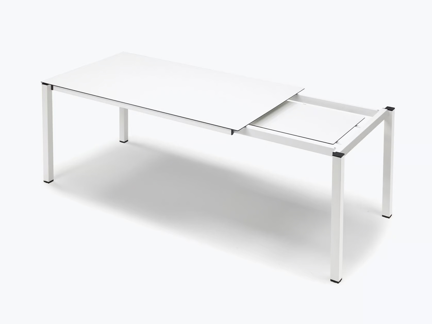 A PRANZO étkezőasztal egyszerű mozdulattal bővíthető 160 cm-ről 210 cm-re, így ideális választás irodák, éttermek, kávézók és konferenciatermek számára. A fémvázas szerkezet galvanizált acélból készült, négyzetes, 50x50 mm-es lábakkal, matt porszórt bevonattal. A golyóscsapágyas sínrendszer biztosítja a könnyű bővítést. Az asztallap 12 mm vastag HPL laminált anyagból készült, amely beltéri és kültéri használatra egyaránt alkalmas. A PRANZO modern asztalok sorába tartozik, és tökéletesen kiegészíthető design székekkel vagy kávézó székekkel, így sokoldalú megoldást kínál különböző vendéglátóipari egységek és irodai környezetek számára.