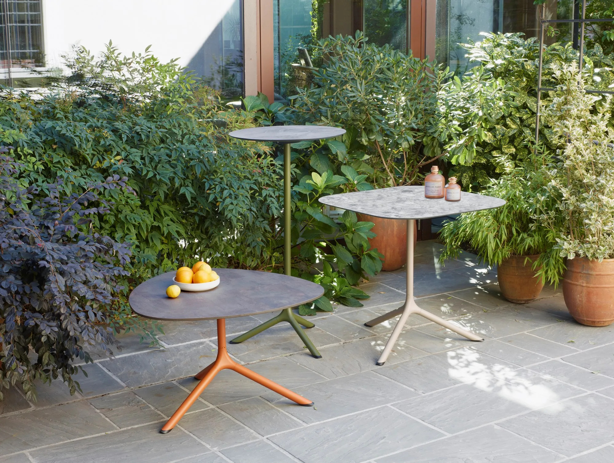 A TRIPÉ egy háromágú acél talapzattal rendelkező asztal, amely öntött alumínium lábcsatlakozással rendelkezik. Az asztallap csatlakozását öntöttvas pók biztosítja. Két magasságban elérhető: 73 cm és 50 cm. Különböző formájú, méretű és felületű asztallapokkal kompatibilis. A TRIPÉ egy innovatív megoldás, amely a funkcionalitást, a minimalizmust és az egyediséget ötvözi. Az acél alap és az öntött alumínium csatlakozás nem hagyományos monoblokk, hanem több elemből áll, amelyek igény szerint variálhatók és cserélhetők. Ez a rugalmas és sokoldalú rendszer ideális választás étkezőasztalokhoz, irodai asztalokhoz, modern asztalokhoz, valamint kávézó székekkel és design székekkel való kombinációhoz, így tökéletesen illeszkedik irodákba, éttermekbe, kávézókba és középületekbe.