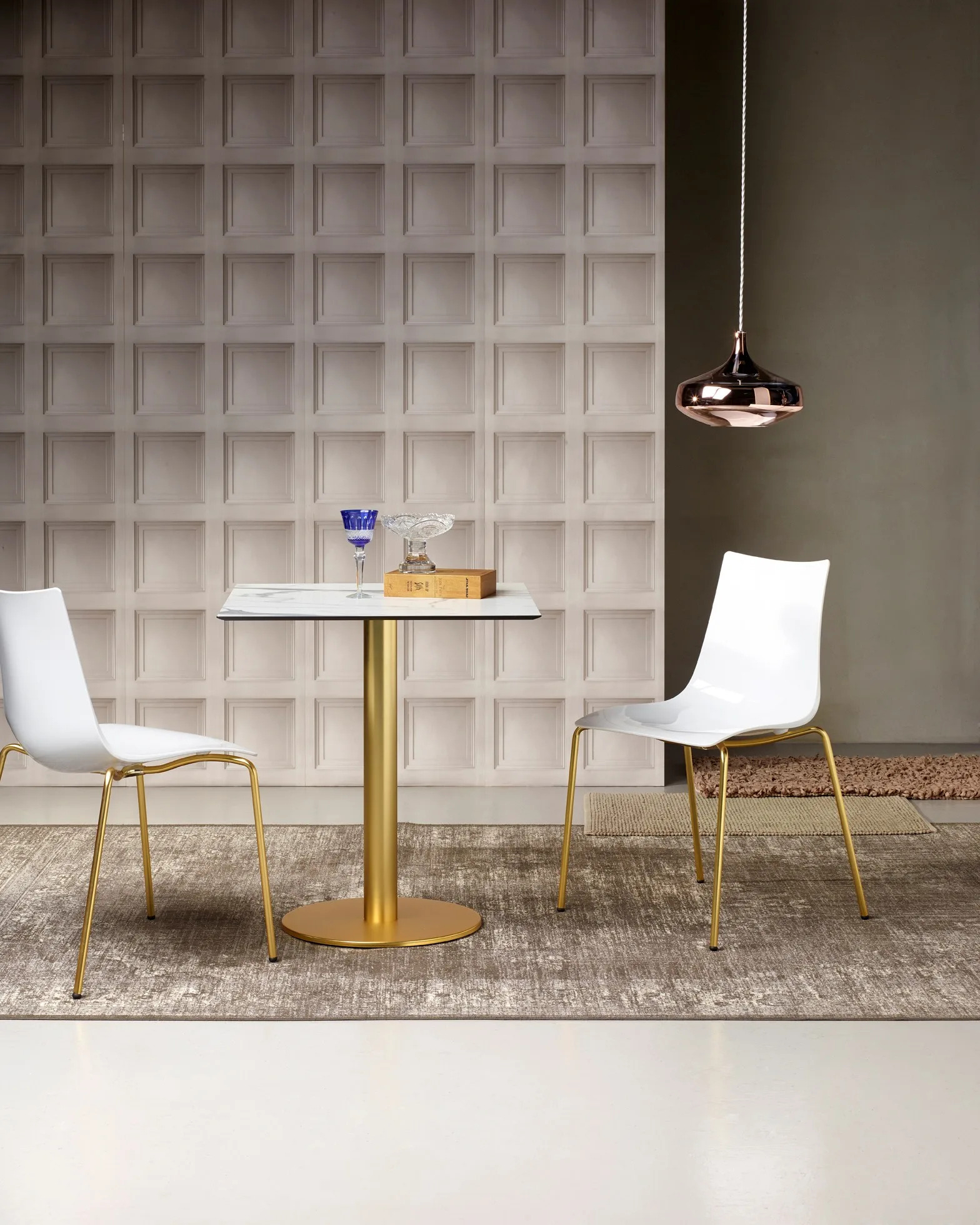 A ZEBRA ANTISHOCK egy sokoldalú, egymásra rakható szék, amelynek fő része polikarbonátból készült. A 16 mm átmérőjű, krómozott vagy szatén sárgaréz bevonatú acélcsőből készült négy lábú váz elegáns megjelenést biztosít. Kiválóan alkalmas irodai asztalokhoz, étkezőasztalokhoz, valamint modern asztalok mellé kávézókban, éttermekben és középületekben. A szék elérhető karfás változatban és fix szövet ülőpárnával is. Kárpitozott változatok közül választható szövött szövet, bársony, műbőr és technoszövet. Igény szerint különböző szövetkombinációk is elérhetők. Beltéri használatra ajánlott. Az ár két azonos konfigurációjú darabot tartalmaz.