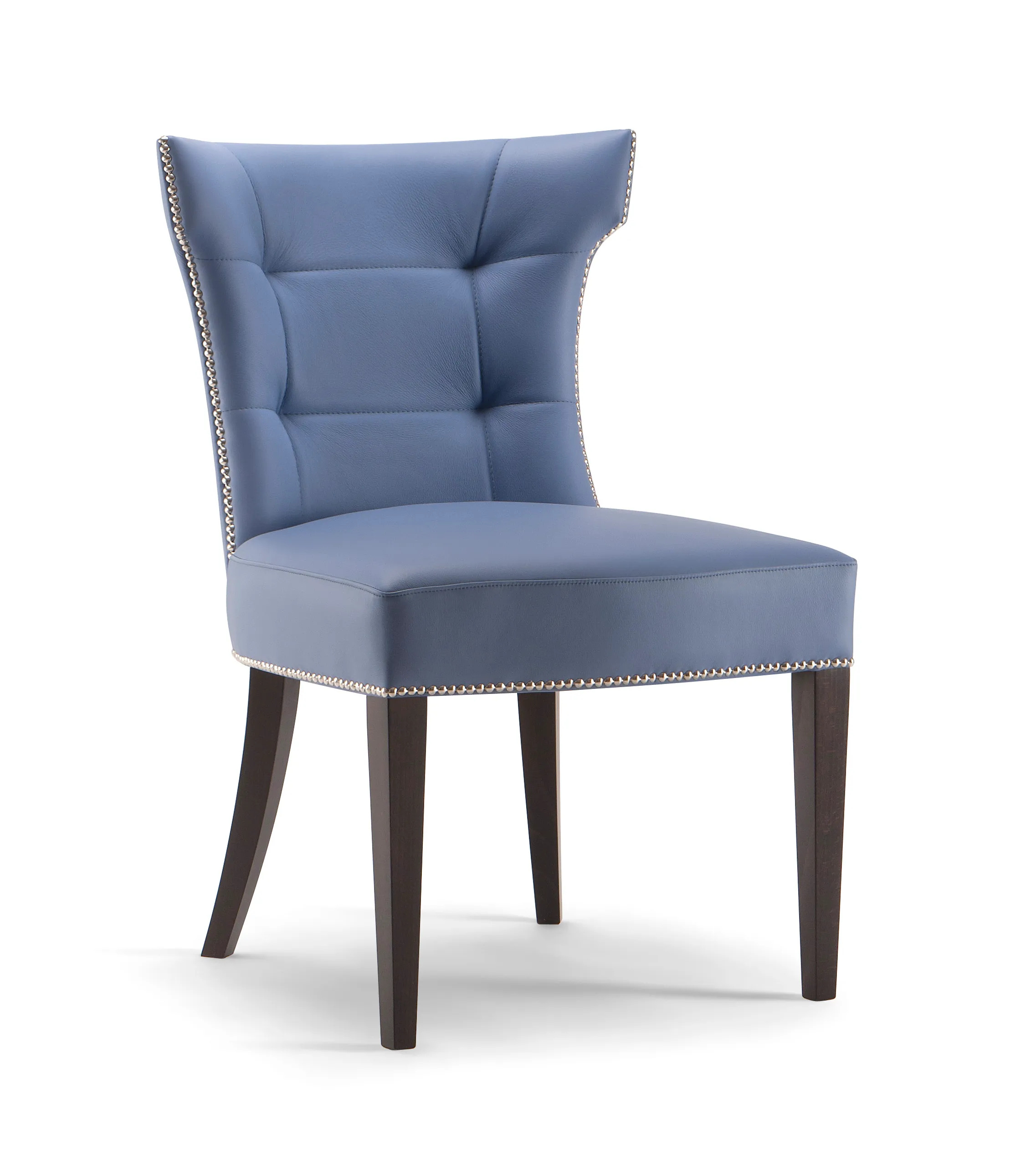 A szegecselt szegély eleganciát kölcsönöz, míg a mély gombos háttámla fokozza a szék luxus és impozáns megjelenését. Ideális választás étkezőasztalok mellé, irodai asztalokhoz vagy modern asztalok köré, ahol a stílus és a kényelem találkozik. A kárpitozás többféle anyagból választható, így könnyedén illeszkedik bármilyen belső térhez. A design székek sorozata a múlt eleganciáját hozza el a modern környezetbe, a kiváló tervezés és kézművesség révén. Kávézó székeként is megállja a helyét, ahol a kifinomultság és a funkcionalitás egyaránt fontos.