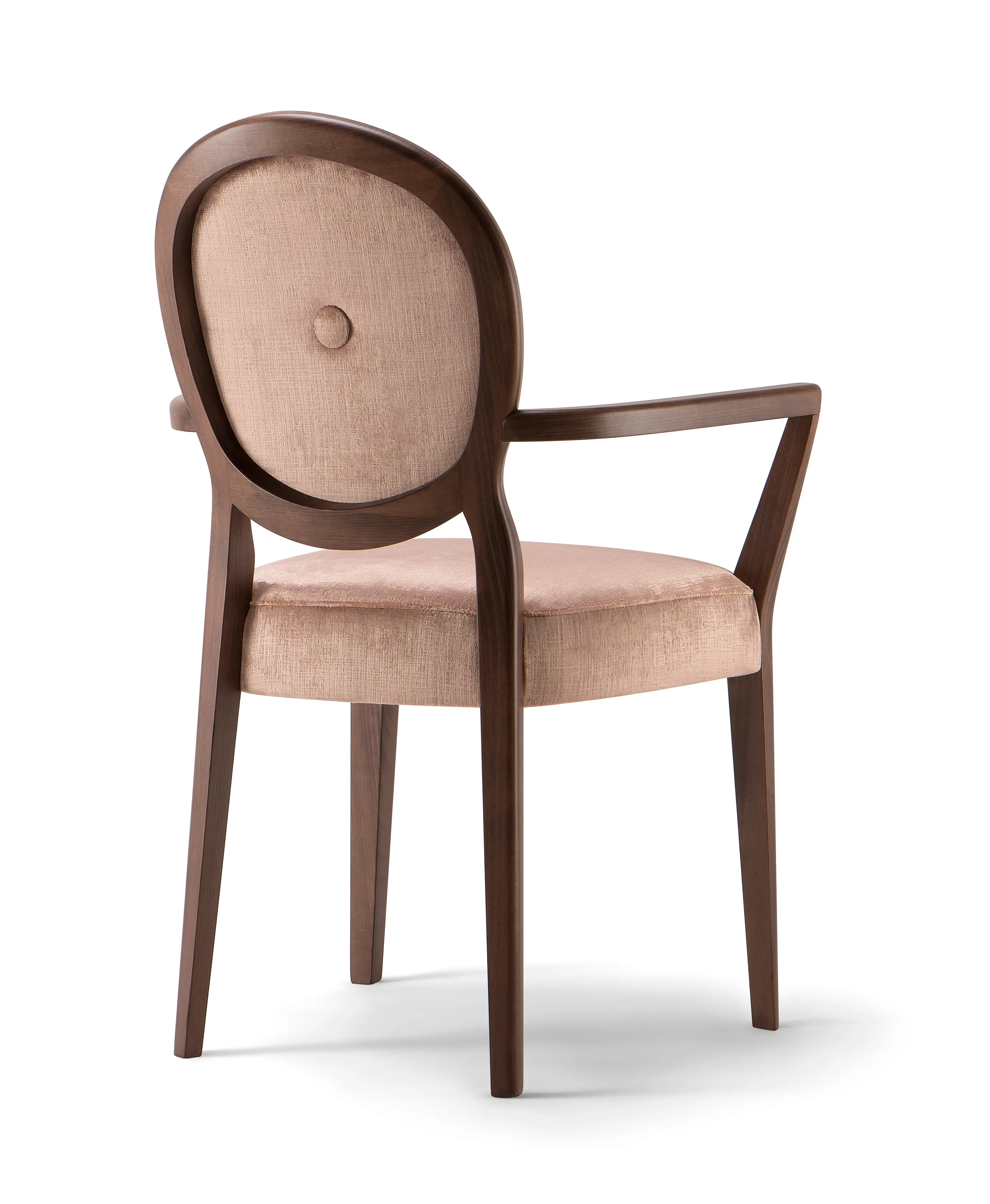 A SOFIA karfás szék masszív fa váza biztosítja a stabilitást és tartósságot, ami különösen előnyös irodák, éttermek, kávézók és középületek számára. A szék kárpitozott ülőfelülete és háttámlája számos szövetváltozatban elérhető, így könnyen illeszkedik bármilyen belső térhez. A háttámla gombos részlete elegáns megjelenést kölcsönöz. A design székek között kiemelkedő, a múlt stílusjegyeit és hagyományos technikáit újraértelmező darab, amely tökéletesen illeszkedik modern asztalok és irodai asztalok mellé. Ideális választás étkezőasztalok és kávézó székek kiegészítésére is.