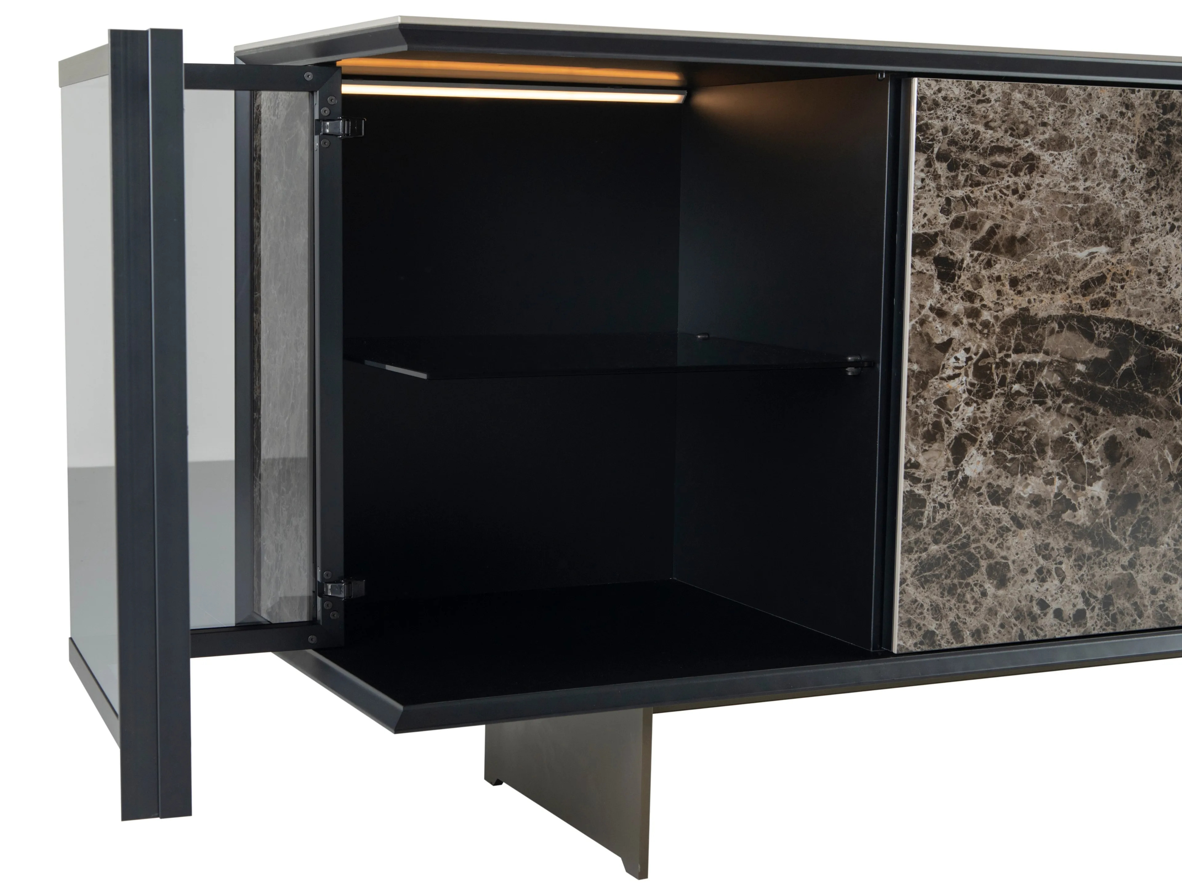 Az AIRA egy üveges tároló szekrény, amely porcelán kőagyagból készült, és különböző kivitelben elérhető, mint például Emperador vagy Portoro. Az "Aira" arab eredetű szó, jelentése "ragyogó", ami tökéletesen illik ennek a tároló szekrénynek a kifinomult eleganciájához. A porcelán kőagyag ajtók és a belső LED világítás révén bármely helyiségben kiemelkedő megjelenést biztosít. Az oldalakon elhelyezett ablakok egyedi nyitási mechanizmusa különleges karaktert kölcsönöz a dizájnnak. Ideális választás irodák, cégek, raktárak, logisztikai központok, kiskereskedők, középületek, iskolák, valamint vendéglátóipari és építkezési projektek számára.