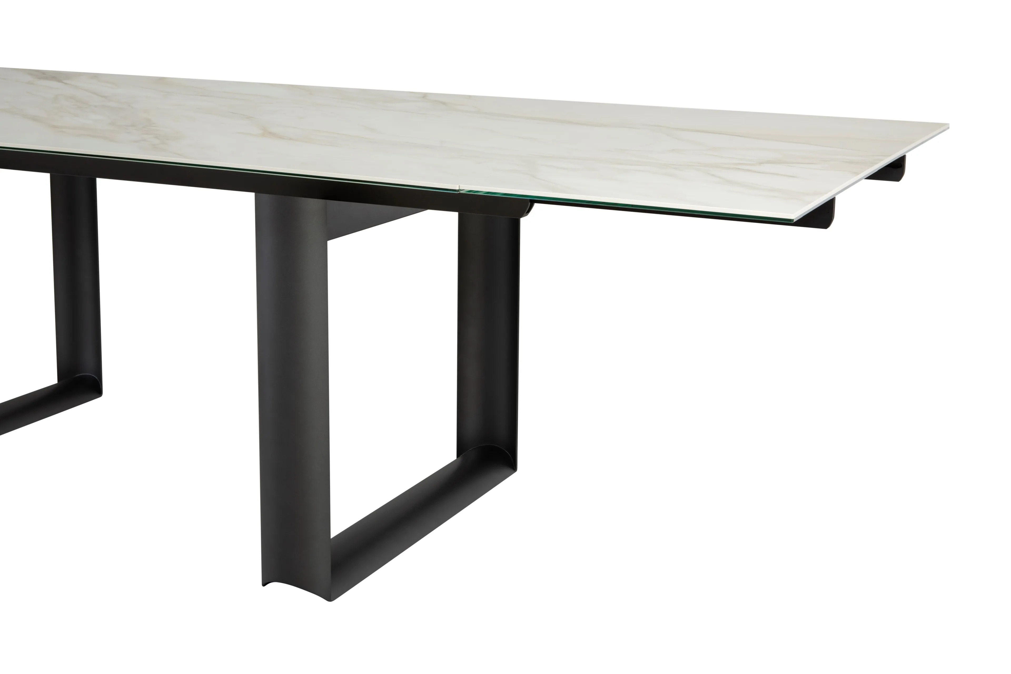 A Cube egy bővíthető, téglalap alakú étkezőasztal, amely porcelán kőagyagból készült, különböző felületekkel, és faszénszürke fém alappal rendelkezik. Az asztal fix vagy bővíthető változatban is elérhető, modern megjelenésével bármely irodai vagy vendéglátóipari környezetbe illeszkedik. A különleges alapforma elegáns megjelenést kölcsönöz, így ideális választás irodai asztalként, éttermek, kávézók vagy konferenciatermek számára. A Cube asztal sokféle kivitelben kapható, így könnyen kombinálható design székekkel és kávézó székekkel, hogy harmonikus és modern belső teret hozzon létre.