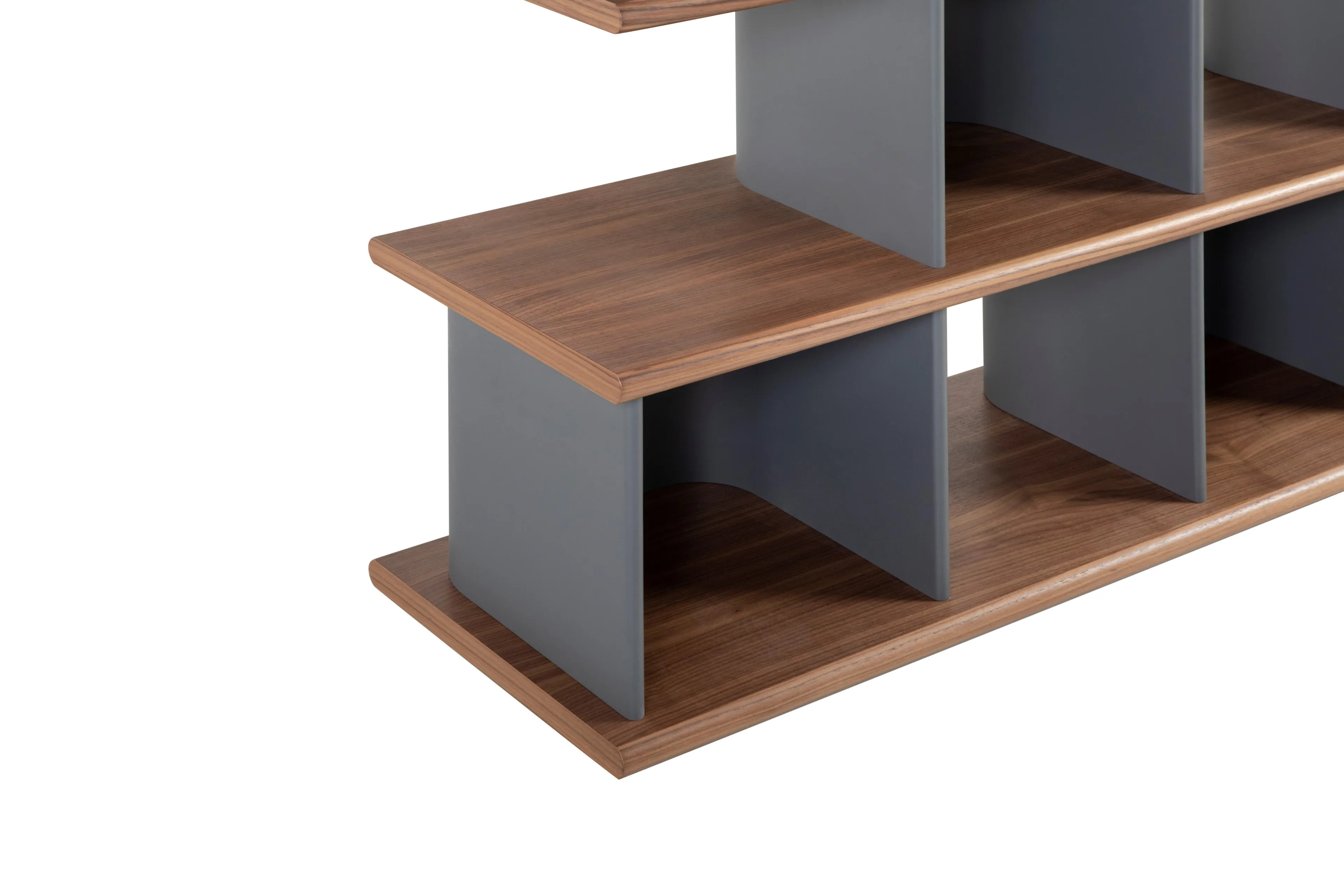 A KASPAR könyvespolc nemcsak könyvek tárolására alkalmas, hanem valódi térelválasztóként is funkcionál. Ívelt fa szerkezete bőr vagy bécsi szalma kosarakkal díszített, amelyek elegáns megjelenést kölcsönöznek. A polcos tároló szekrények színét és szerkezetét a széles felületkezelési választéknak köszönhetően egyedileg választhatja ki. Ideális megoldás irodák, cégek, raktárak, logisztikai központok, kiskereskedők, középületek, iskolák számára, ahol a tárolás és a térszervezés kiemelt fontosságú. A fiókos tároló és gardrób szekrények mellett a KASPAR egy sokoldalú és esztétikus választás, amely illeszkedik a modern belső terekhez.