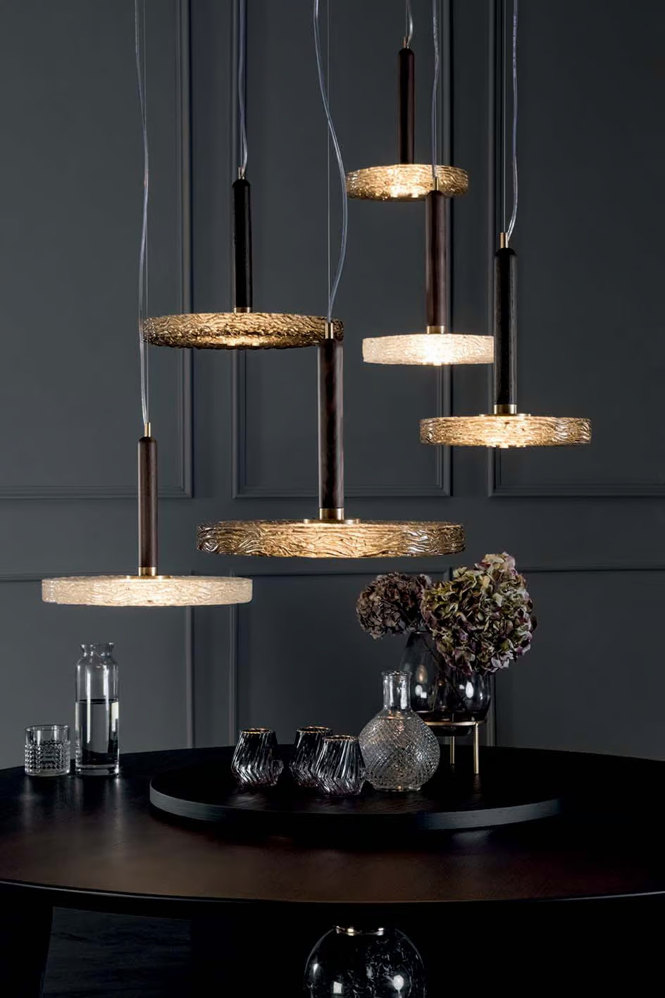 A MACRABÈ függőlámpa ötvözi az öntött üveg formát a tömör tölgyfa elemekkel, arany részletekkel kiegészítve. A lámpa egyenletes fényeloszlást biztosít, amely ideális hangulatos világítást teremt étkezőkben. A modern világítási megoldás tökéletes választás irodák, cégek, éttermek, kávézók, szállodák, szórakozóhelyek, középületek, iskolák és kórházak számára. A belső világítás tervezésénél a MACRABÈ lámpa elegáns és funkcionális elemet képvisel, amely harmonikusan illeszkedik a különböző belsőépítészeti stílusokhoz.