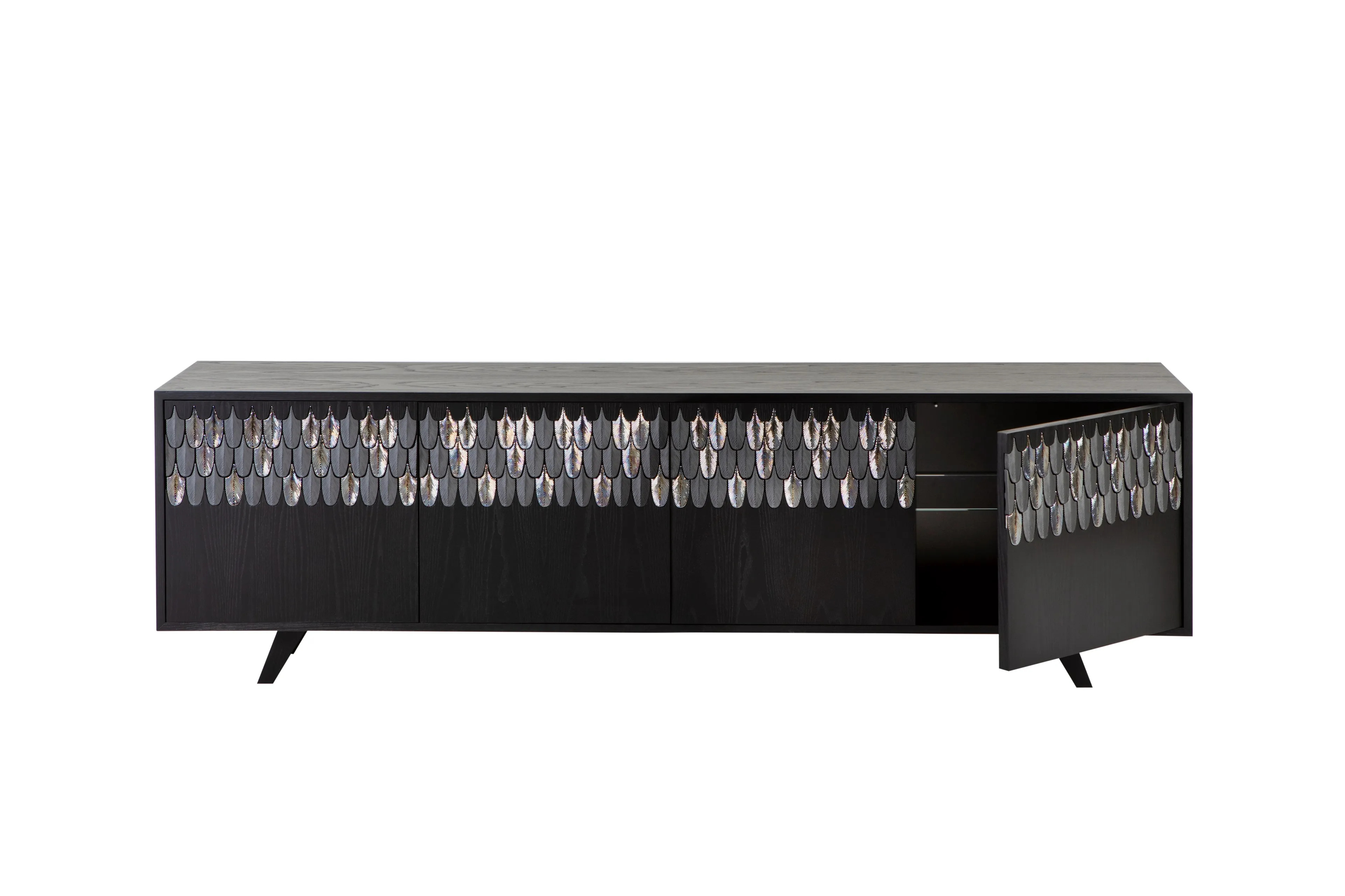 A PLUME tároló szekrények különleges megjelenésükkel és részletgazdag kidolgozásukkal tűnnek ki. A Cristina Celestino által a BottegaNove számára tervezett Plumage kollekciót felhasználva, a szekrény ajtajait egymásra helyezett tollak finom zuhataga borítja, melyek csillogó árnyalatait a BottegaNove mesteremberei által készített mázas kerámia adja. A Plumage kollekció kerámia mozaikjai ebben a fiókos tárolóban és polcos tárolóban kapnak meglepő alkalmazást, amely ideális választás lehet irodák, cégek, raktárak, logisztikai központok, kiskereskedők, középületek, iskolák, valamint szállodai és vendéglátóipari vezetők számára.