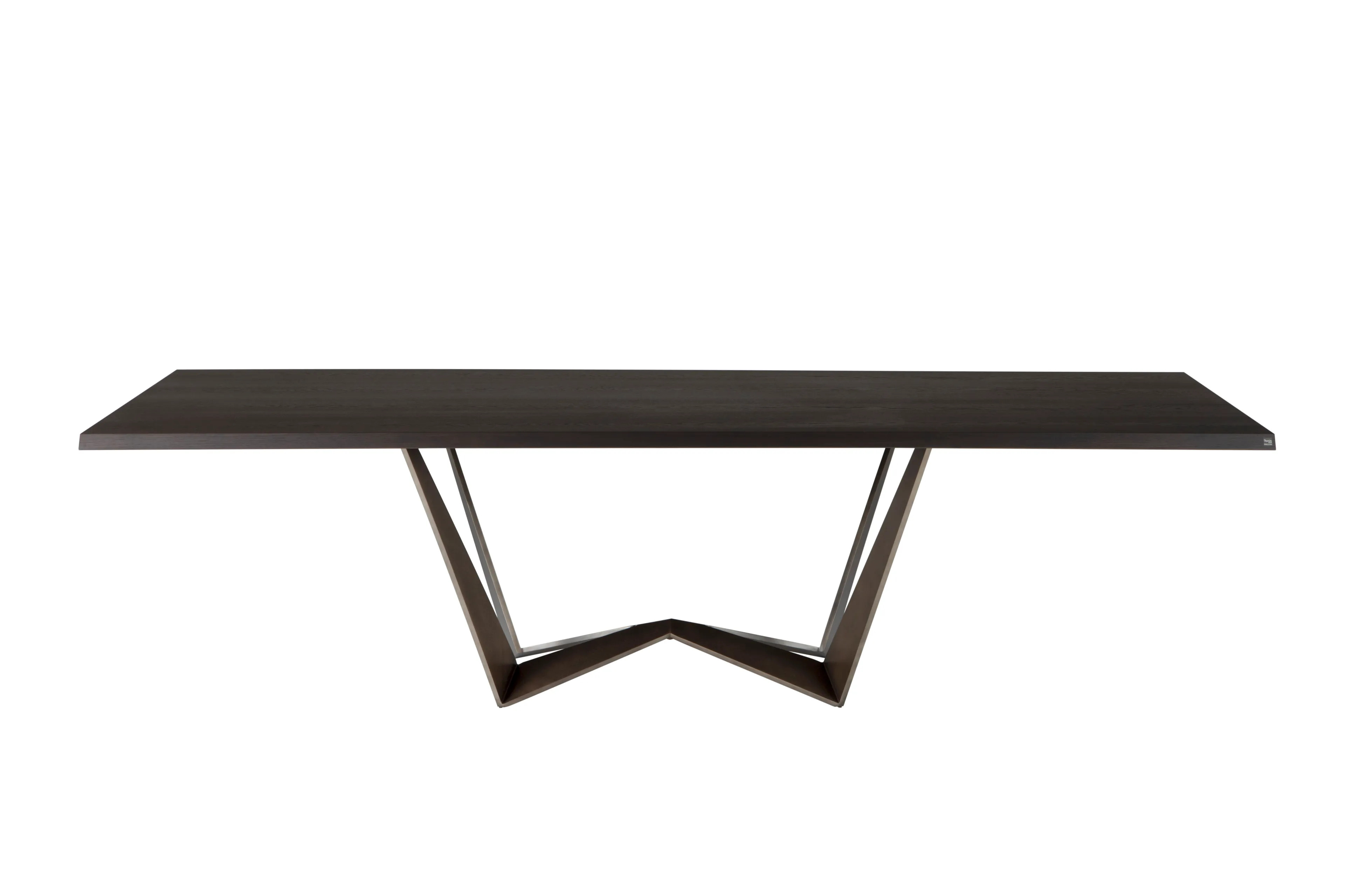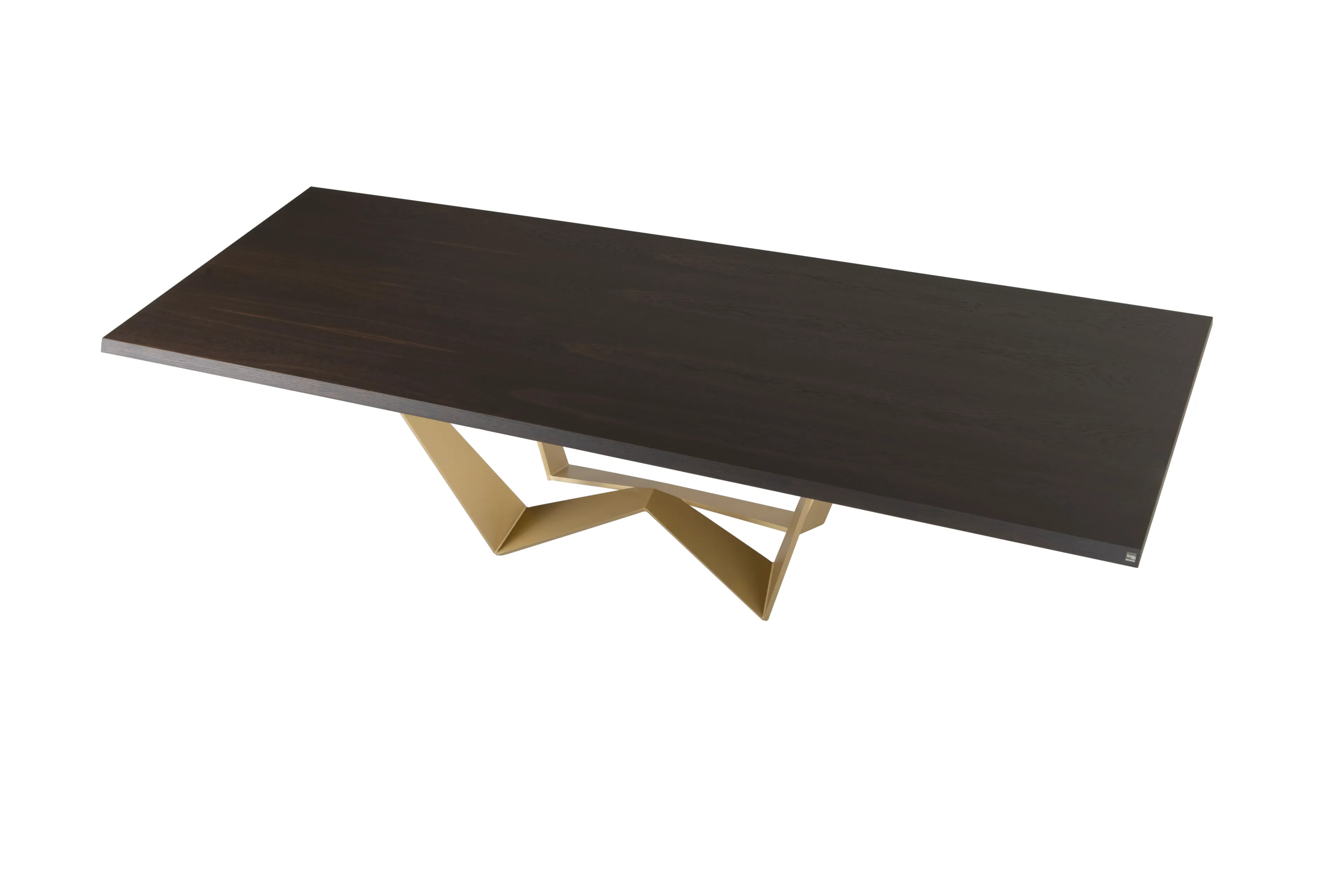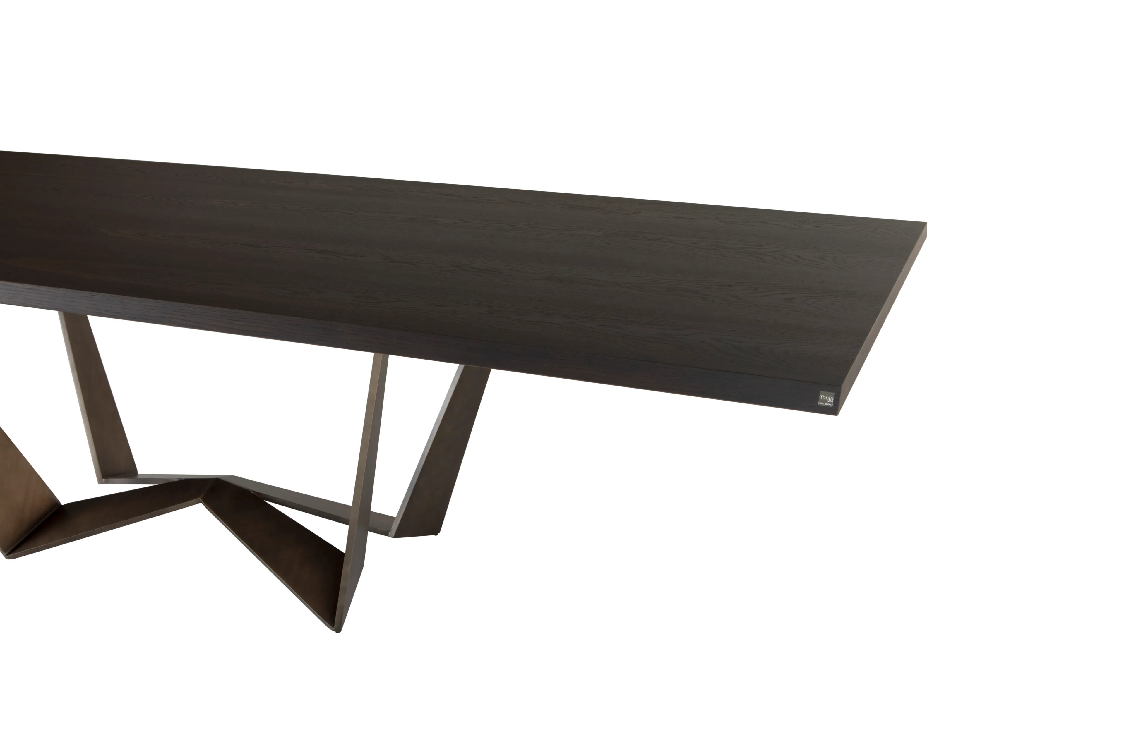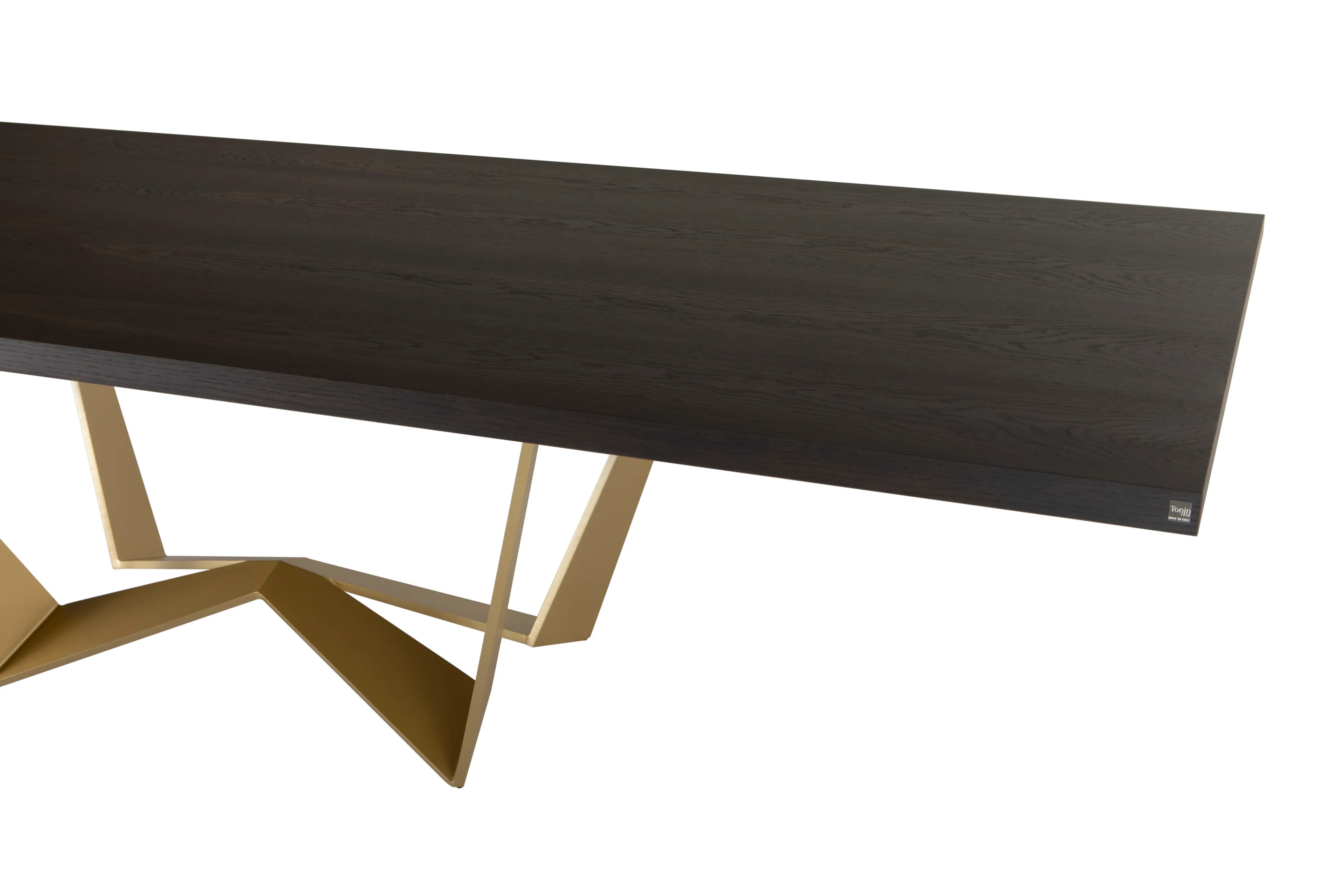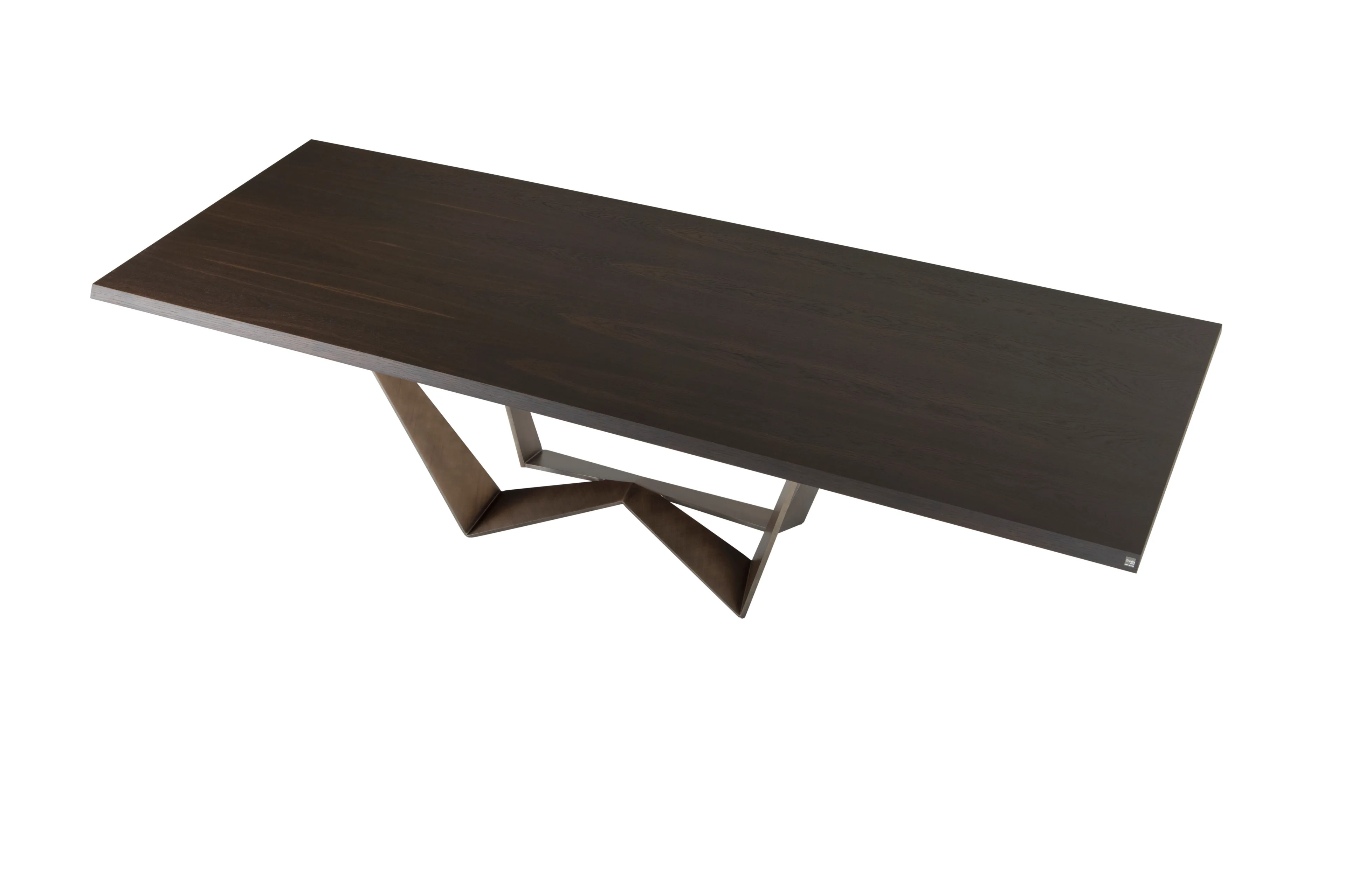 A REVERSE téglalap alakú asztal új felületekkel és eredeti formájú asztallapokkal rendelkezik, amelyek harmonikusan illeszkednek bármilyen környezetbe. A geometrikus alap és az elegáns, lágy asztallapok közötti kontraszt különleges megjelenést kölcsönöz. Az asztal fix kialakítású, festett acél szerkezettel és tömör tölgyfa asztallappal. A fém alap elérhető karbon szürke, matt kő bronz, matt arany kő bronz és csiszolt réz színekben. A fa asztallapok tömör Canaletto dió, tömör sötét tölgy és tömör fekete kőris változatokban kaphatók. Ideális választás étkezőasztalként, irodai asztalként vagy modern asztalok és design székek kiegészítőjeként kávézókban és éttermekben.