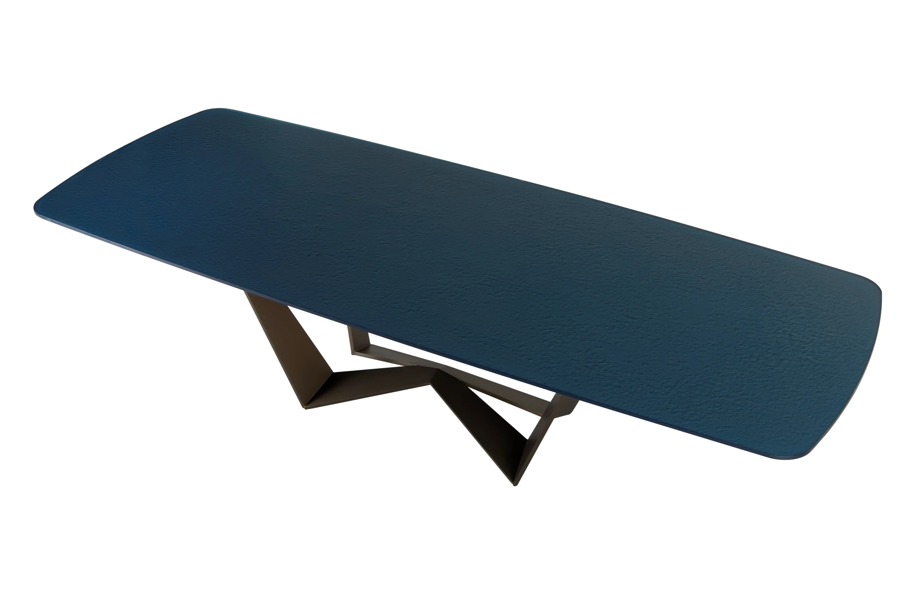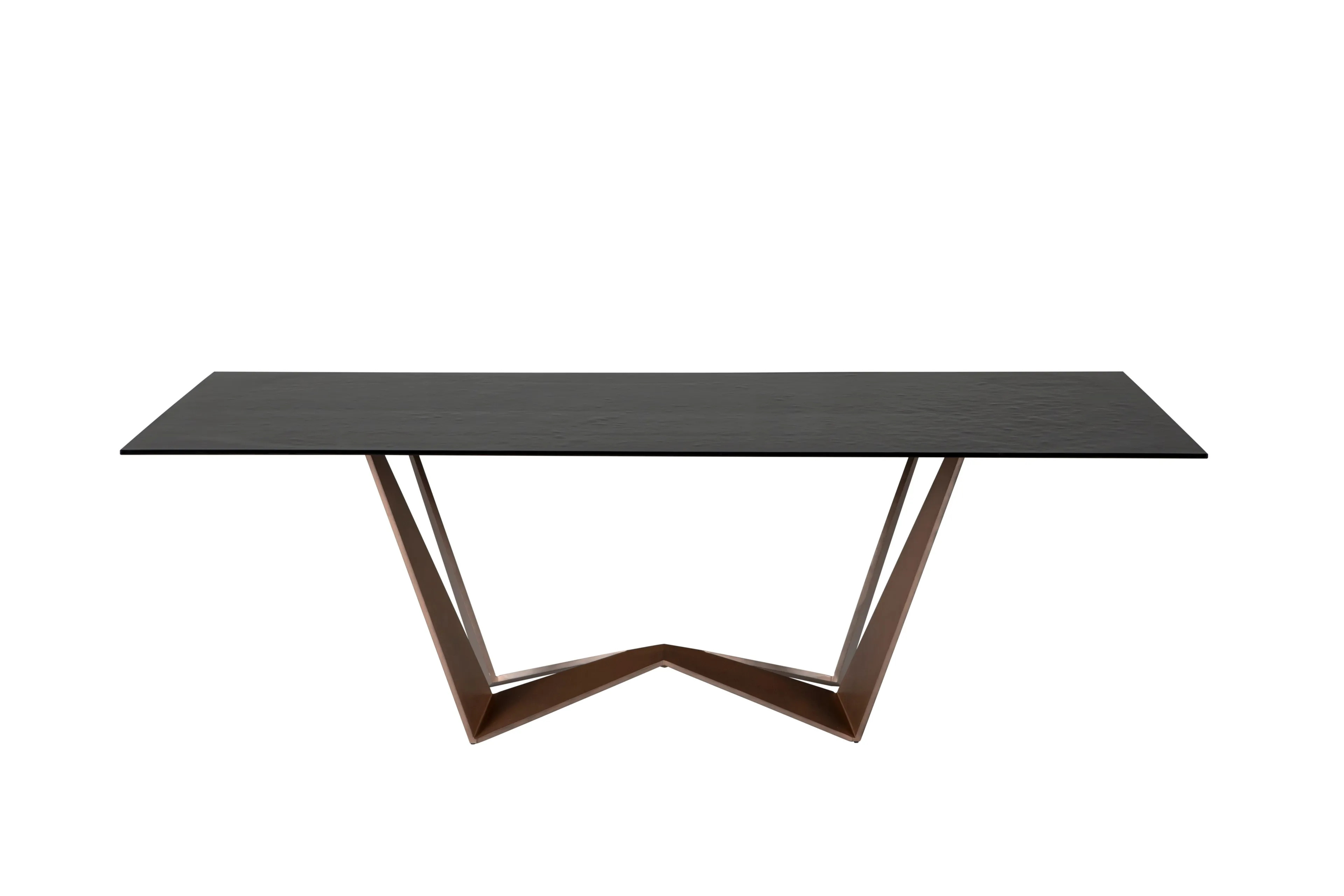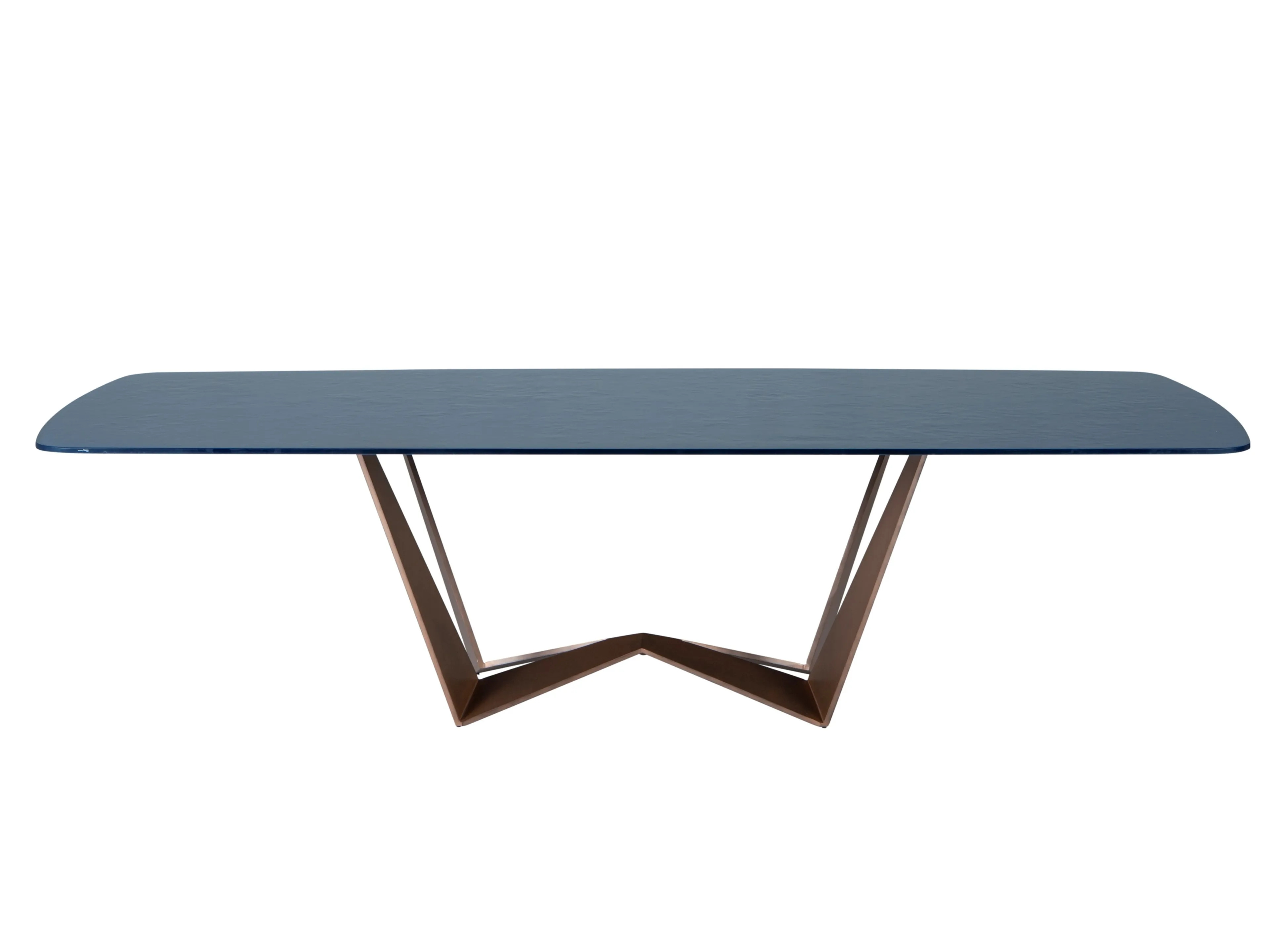 A REVERSE asztal új felületekkel és egyedi formájú lapokkal rendelkezik, amelyek harmonikusan illeszkednek bármilyen környezetbe. A geometrikus alap és az elegáns, lágy üveglapok közötti kontraszt különleges megjelenést kölcsönöz. Az asztal fix kialakítású, festett acél szerkezettel és kalapált színes üvegből készült lapokkal. A fém alap elérhető szénszürke, matt kő bronz, matt arany, csiszolt kő bronz és csiszolt réz színekben. Az üveglapok választhatók tiszta, extra tiszta, átlátszó füstszínű, fazettált extra tiszta átlátszó és kalapált fekete üveg változatban. Ideális választás étkezőasztalként, irodai asztalként vagy modern asztalok részeként, kiegészítve design székekkel és kávézó székekkel.