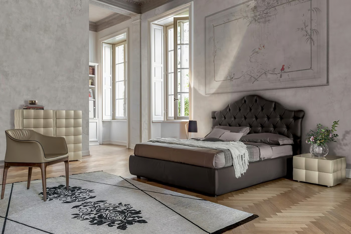 A VENEZIANO ágy a velencei elegancia megtestesítője, amely ideális választás szállodák, panziók és gyermekintézmények számára. A fejtámla középen emelkedik, hasonlóan egy épület bástyájához, míg a kézzel készített Chesterfield technika kifinomult Capitonné hatást kelt. Az alsó keret harmonikusan illeszkedik a pompás fejtámlához, egyszerű kárpitozással. Ez a bútordarab tökéletesen illeszkedik a hálószoba bútorok közé, és stílusos kiegészítője lehet bármely gyerekszoba dekorációnak. A VENEZIANO ágy ideális választás szálláshelyek bútorozásához, biztosítva a kényelmet és a stílust egyaránt.