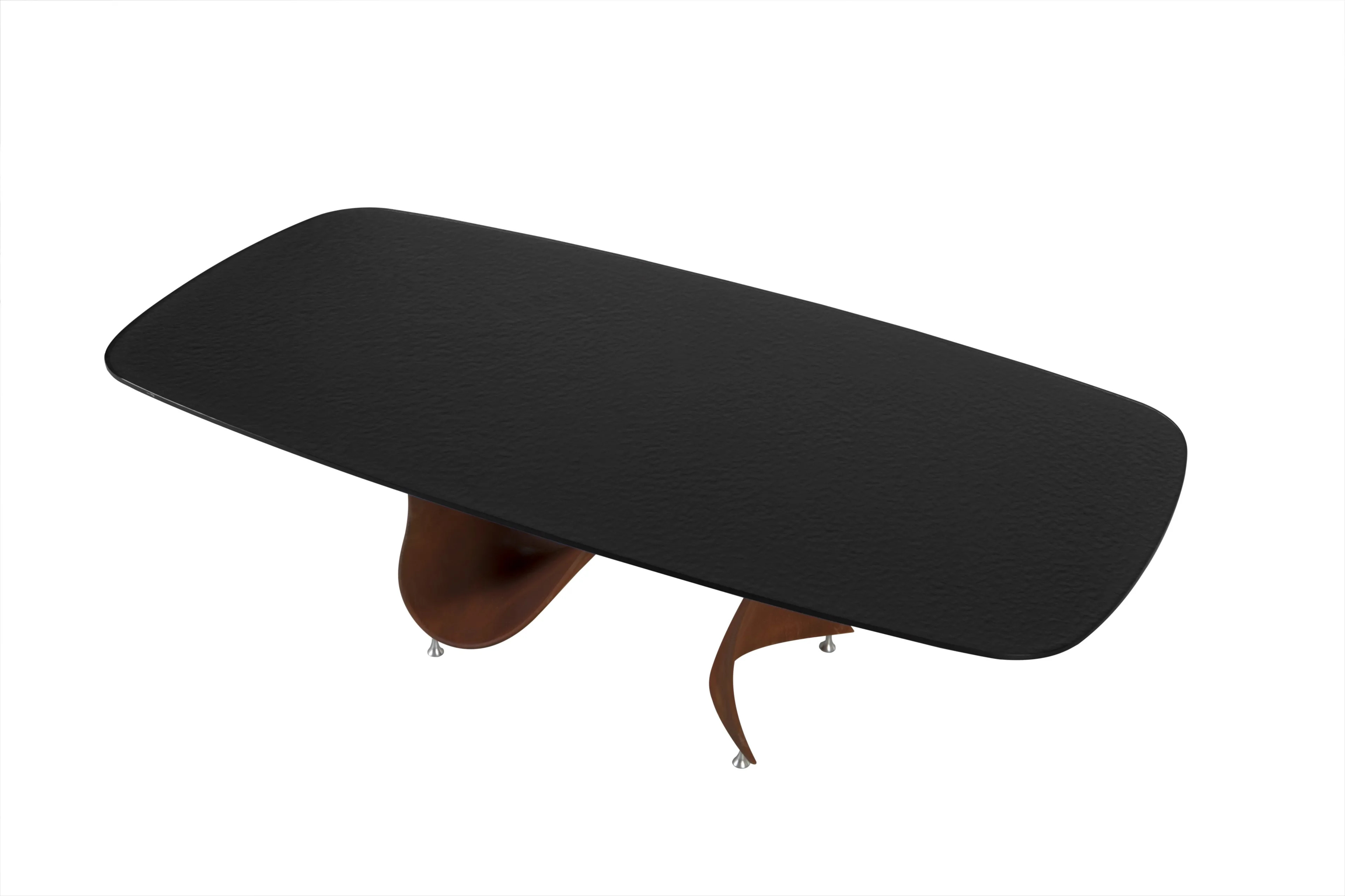 A WAVE egy fix téglalap alakú étkezőasztal, amely kék vagy fekete kalapált üveglappal rendelkezik, elérhető téglalap vagy formázott változatban. Az asztallap különböző üvegtípusokból választható: átlátszó, bronz, füstszínű, extra tiszta, fehér vagy bézs üveg, valamint kalapált fekete üveg. Az asztal Baydur® anyagból készült talapzata fényes fehér, fekete, bézs, pezsgő vagy Corten (RAL színezés) kivitelben kapható. A WAVE a különböző és innovatív anyagokkal való munka eredménye, ahol a Baydur® lehetővé teszi a talapzat számára, hogy tökéletesen utánozza a hullámok erőteljes mozgását. Az asztallap statikus megjelenése ellensúlyozza ezt, újradefiniálva a hullám dinamikáját. Ideális választás modern asztalok, irodai asztalok, design székek és kávézó székek mellé.