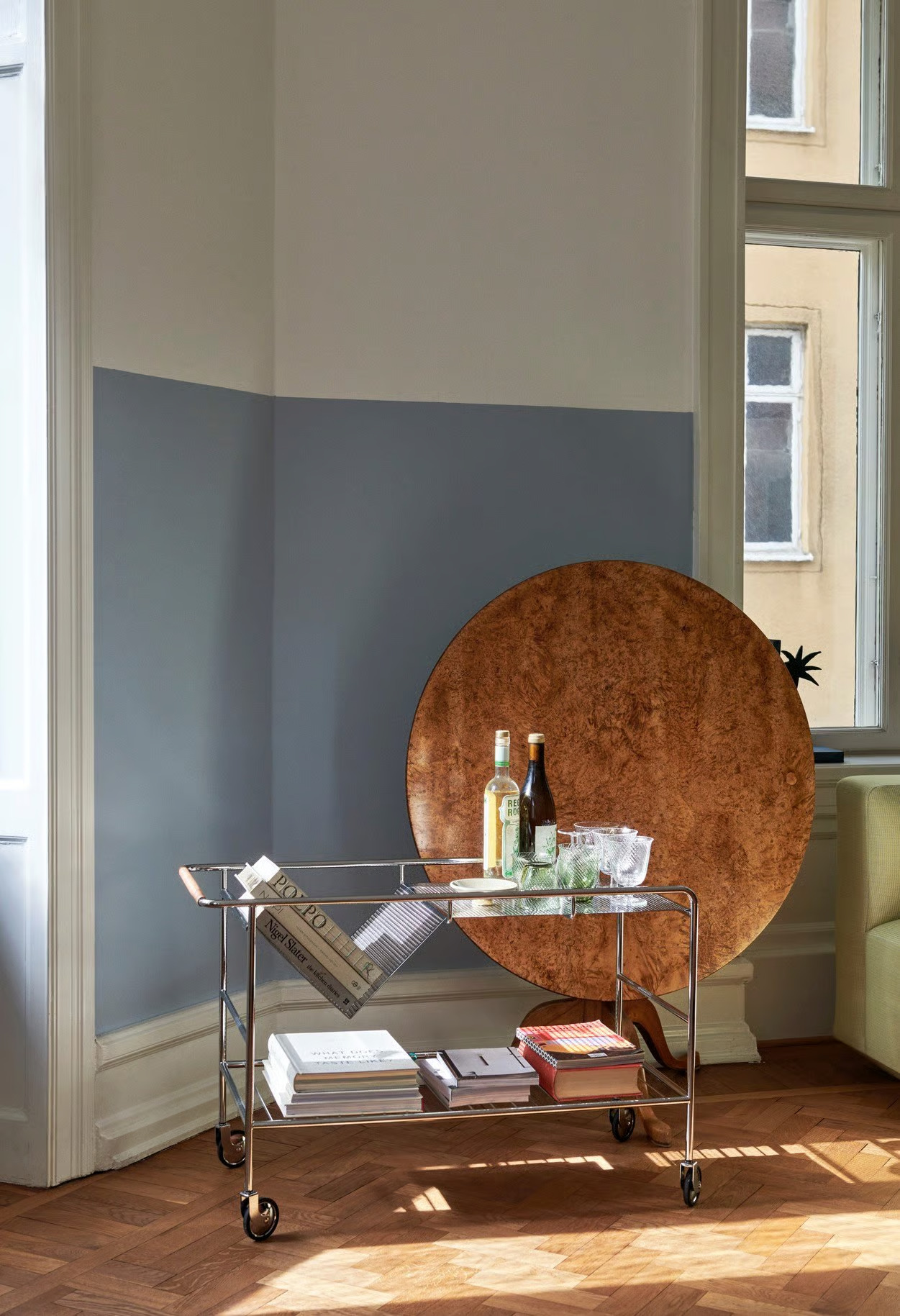 Az ALIMA NDS1 tároló szekrények a Note Design Studio kreatív káosz ihlette megoldásai közé tartoznak, ideálisak irodák, cégek és középületek számára. A fiókos tároló V-alakú kialakítása lehetővé teszi a könyvek és magazinok könnyű tárolását és bemutatását. Az acélból készült, porszórt felületű kocsi elegáns megjelenést biztosít, míg a dió- vagy tölgyfa tálcák és bőr fogantyú prémium érzetet kölcsönöznek. A gyártási folyamat során hajlított és hegesztett csöveket használnak, a bőr zsinór pedig gondosan van szőve a fogantyú köré. A gardrób szekrények króm vagy fekete fém, valamint lakkozott tölgy vagy diófa kivitelben érhetők el. A terméket Kínában, a Nine United gyártja.