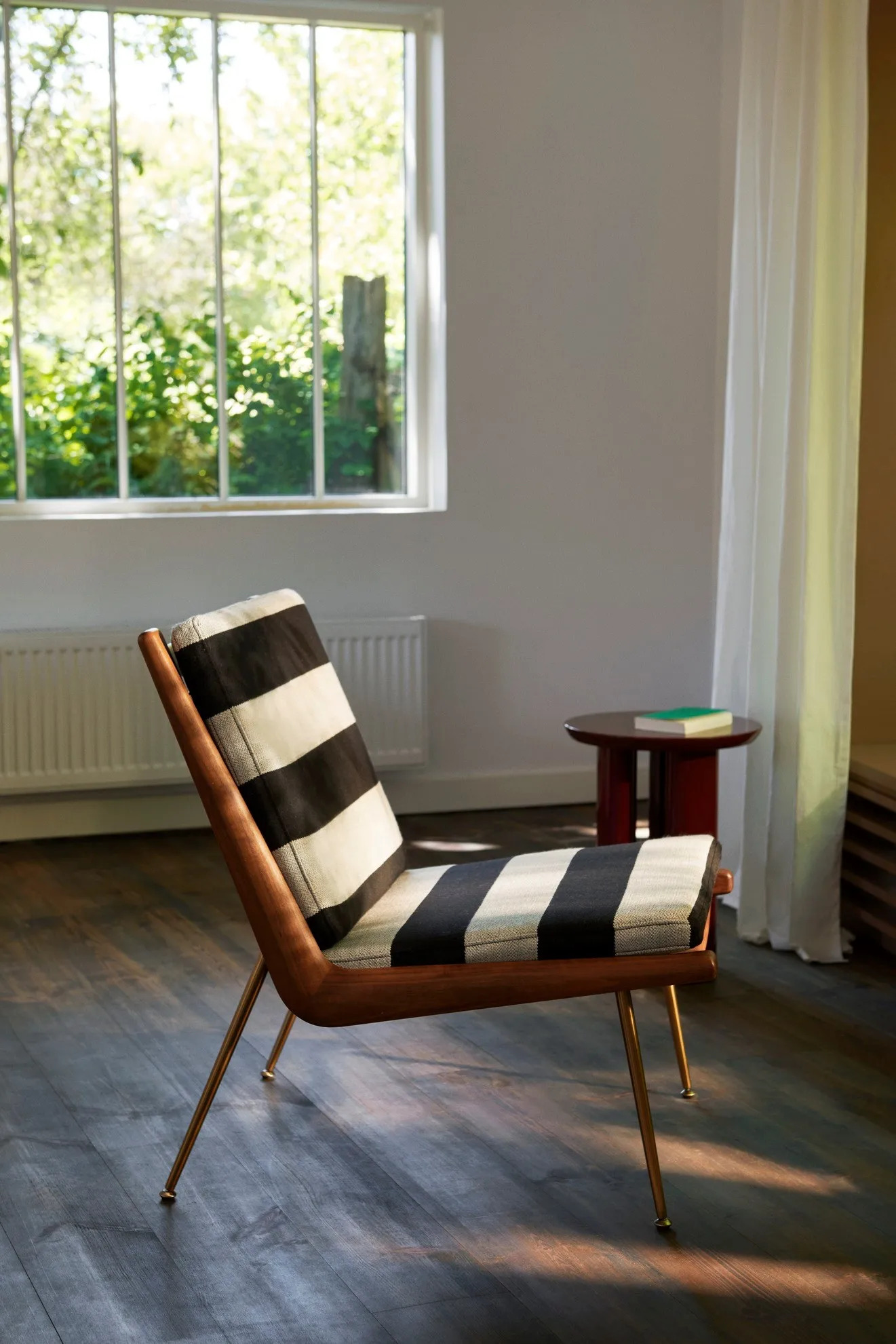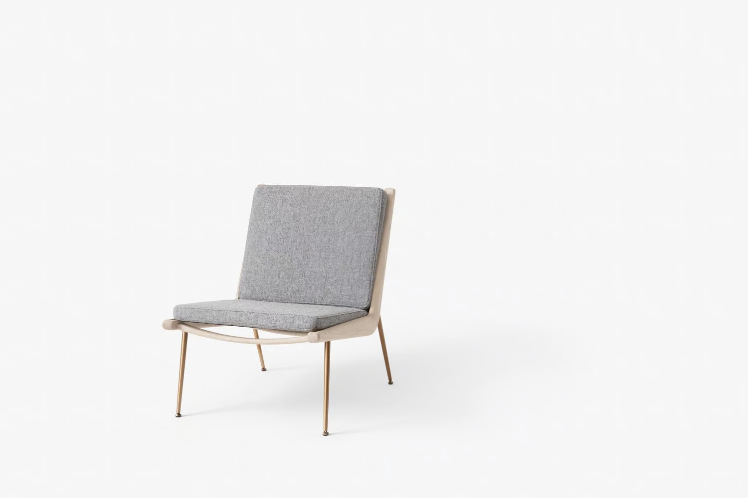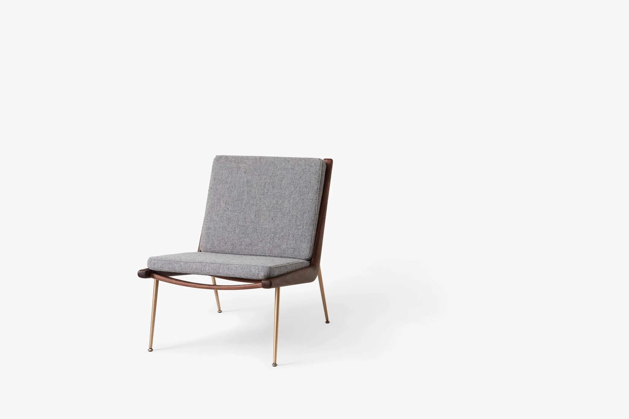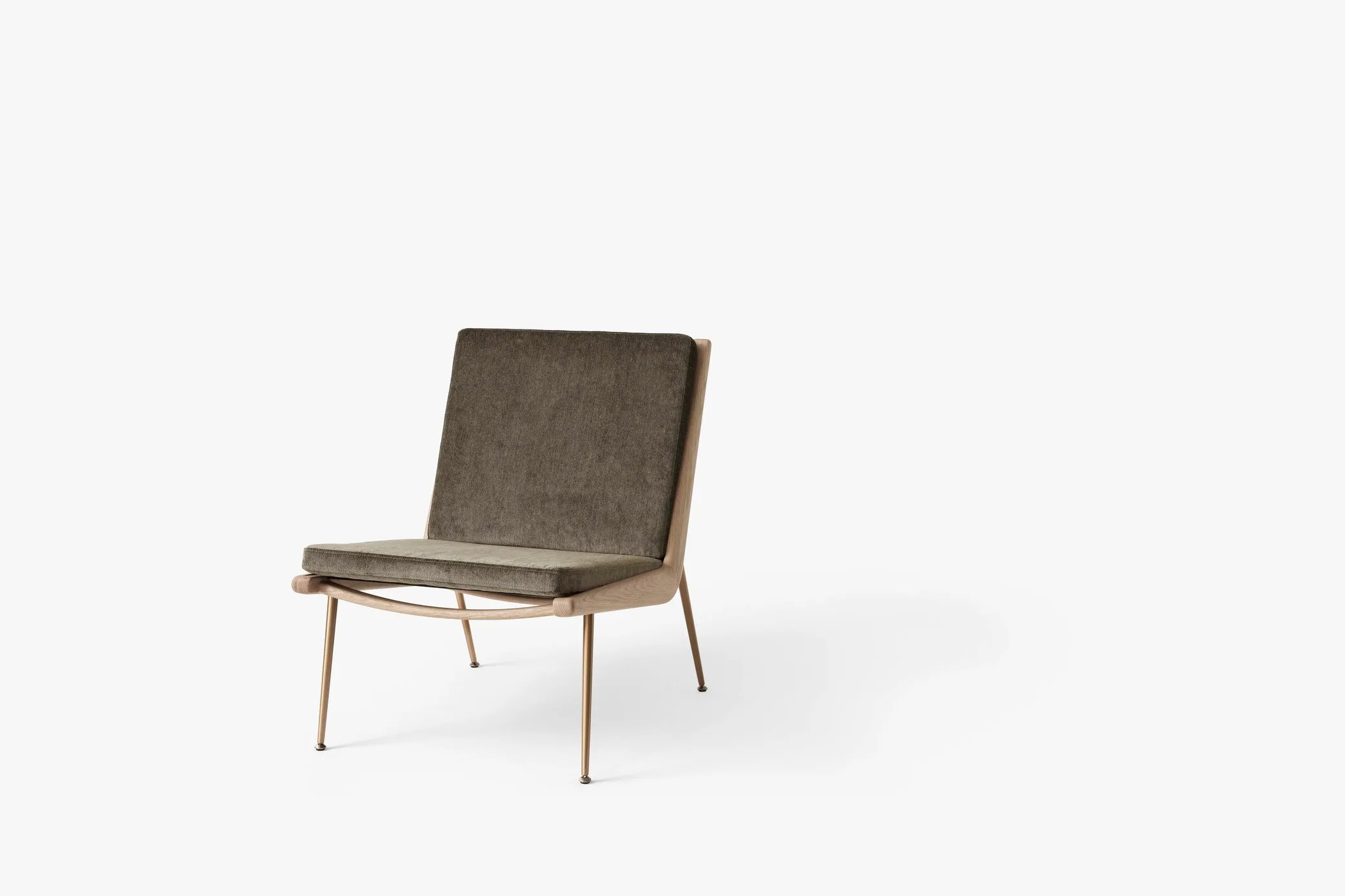 A BOOMERANG HM1 kanapé, amelyet Hvidt & Mølgaard tervezett 1956-ban, a dán dizájn időtlen remekműve. Letisztult formavilága és sallangmentes kialakítása révén ideális választás irodák, szállodák, éttermek és kávézók számára. A kézzel polírozott fa váz és a karcsú réz vagy rozsdamentes acél lábak elegáns megjelenést kölcsönöznek. Az anyagok között található tömör fa, HR hab, poliészter vatta és különféle szövetek. A keret marással készül, a rugók műanyaggal bevont acélból vannak, a szerelvények lézervágott fémből. A fa felületek olajozott tölgy, olajozott dió vagy szappanozott tölgy kivitelben érhetők el, míg a lábak réz vagy rozsdamentes acél változatban. A kanapé Dániában és Litvániában készül a Kvist Industries A/S és UAB BS Classic által.