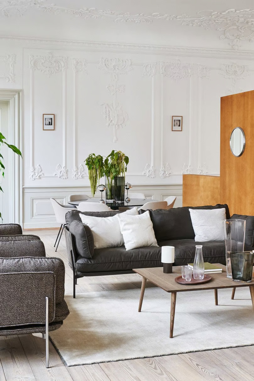 A CLOUD LN1 kanapé az olasz és dán bútorkészítési hagyományokat ötvözi, a dán dizájn határozott formáival és az olasz stílus puha, kényelmes párnáival. A tervezés során a kényelem és a meghittség volt a legfontosabb szempont. Kompakt méretei miatt ideális választás modern nappali bútorokhoz, irodai kanapéként vagy szállodai bútorok részeként. Az anyaghasználat magában foglalja a rétegelt lemezt, tömör fát és acél alapot, no-zag rugókkal. A párnák HR hab és toll keverékéből készülnek, a kárpit pedig különböző szövetekben vagy bőrben érhető el. Az acél lábak szilárdságot biztosítanak. A termék megfelel az EN 15373 Level 2 szabványoknak, biztosítva a tartósságot és biztonságot. Gyártó: Trio Line Polska Sp. z o. o., Lengyelország.