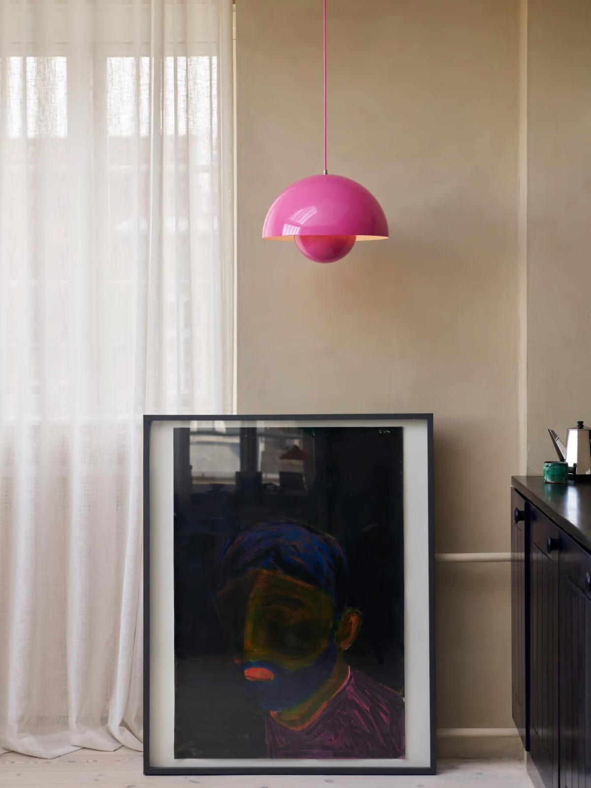 A Flowerpot VP7 lámpák a 60-as évek végének Flower Power mozgalmát idézik, Verner Panton tervező modern és nyitott szemléletét tükrözve. A sorozat négy különböző modellt tartalmaz, két függesztéket és két asztali lámpát, számos színváltozatban. A lámpák két mélyhúzott fémből készült árnyékolóval rendelkeznek, és lakkozott fém anyagból készülnek, 3 méteres textilkábellel. Színek: fekete-fehér mintás, élénk rózsaszín, vermilion vörös, kobalt kék, úszó kék, sötét szilva, szürke bézs, mustár, kő kék, jelző zöld, matt fehér, matt fekete, matt világosszürke. Feszültség: 220-240V – 50Hz. E27 foglalat, max. 100 Watt. A lámpatest kompatibilis A++ – E energiaosztályú izzókkal. Az izzó nem tartozék. Tartalmazza a mennyezeti rózsát. Kábelhossz: 300 cm. Tanúsítványok: CE, IP20, II. osztály. Tisztítás: puha, száraz ruhával. Áramtalanítás szükséges tisztítás előtt.
