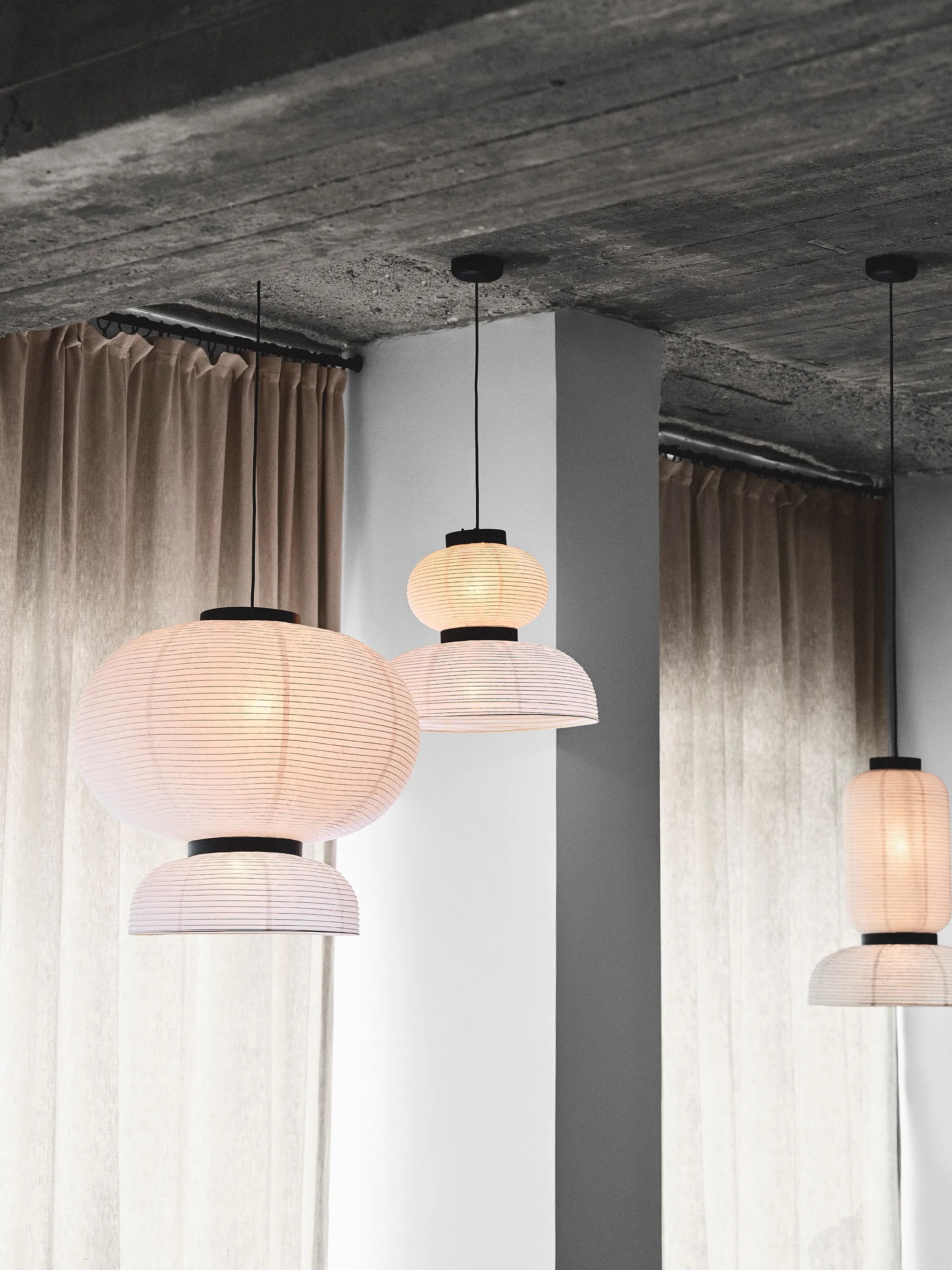 A FORMAKAMI JH5 lámpa a keleti és nyugati kultúra találkozását tükrözi Jaime Hayon modern megközelítésében, amely a hagyományos ázsiai lámpások kortárs újraértelmezése. A lámpa kézzel készített rizspapírból áll, amely különböző méreteket és formákat ötvöz, fekete pácolt tölgyfa részletekkel. Az elefántcsontszínű papír és a fekete szövetkábel elegáns kontrasztot alkot. A lámpa 220-240V feszültségen működik, és két E27 foglalattal rendelkezik, maximum 60 wattos izzókhoz. A termék CE, IP20, és Class II tanúsítvánnyal rendelkezik, és 400 cm hosszú kábellel van ellátva. A lámpatest kompatibilis az A++ – E energiaosztályú izzókkal, de az izzó nem tartozék. A lámpa ideális választás irodák, éttermek, szállodák és középületek számára, ahol a modern és hangulatos világítás kiemelt szerepet kap.