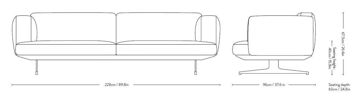 Az INLAND AV23 kanapé Torbjørn Anderssen és Espen Voll tervezése, amely a maximális kényelmet ötvözi egy letisztult, építészeti keretben. Az alacsony formájú, mély ülésű kanapé magas karfákkal és meleg fekete acéllábakkal rendelkezik, amelyek lebegő hatást keltenek. A kanapé váza tömör bükkfából és rétegelt lemezből készül, HR habbal, paplannal és poliészter vattával borítva. Az acéllábak marással és hegesztéssel készülnek, majd porszórt bevonatot kapnak. Az ülőbútor különféle szövetekkel vagy bőrrel kárpitozható, így ideális választás irodák, szállodák, éttermek és kávézók számára. A kanapé Lengyelországban, a Trioline gyártásában készül, és tökéletesen illeszkedik a modern nappali bútorok és designer kanapék világába.