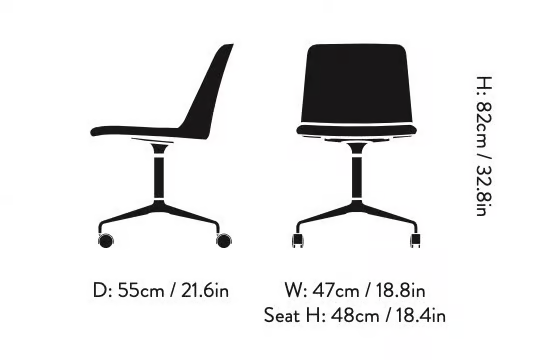 A RELY HW23 szék 100%-ban újrahasznosított műanyagból készült héjjal rendelkezik, amely környezetbarát megoldást kínál irodai környezetek számára. Hee Welling tervezése, amely a minimalizmus és a funkcionalitás ötvözését tükrözi, ergonomikus kialakítással és letisztult megjelenéssel bír. A héj különböző modern színekben elérhető, és igény szerint különféle szövetekkel kárpitozható. Az alumínium forgóalap görgőkkel van felszerelve, és polírozott vagy porszórt kivitelben kapható. Az ülés 30 mm-es habbal és furnérlemezzel készül. A szék erősségét, tartósságát és biztonságát az EN 16139 Level 2 szabvány szerint tesztelték, amely extrém használatra is alkalmas. Az alap kivitelek között megtalálható a polírozott alumínium, bronz és fekete. A műanyag csúszótalpak alapfelszereltségként vannak jelen, de filc csúszótalpak is kérhetők.