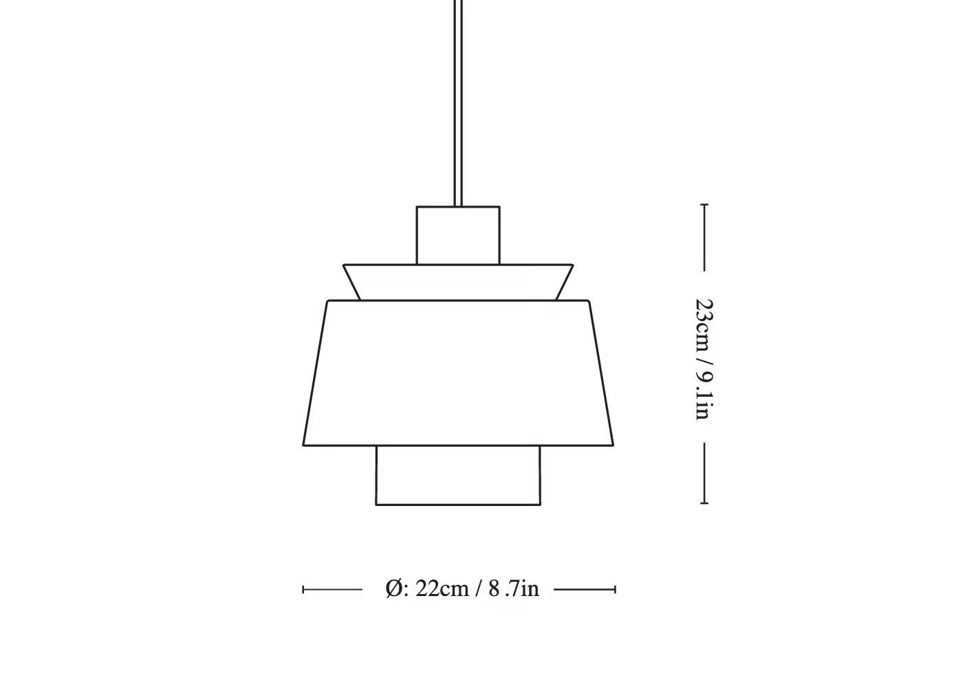 A Pritzker-díjas építész, Jørn Utzon hajók iránti szenvedélye inspirálta az UTZON JU1 lámpát, amelynek jellegzetes formája és éles vonalai az ipari hajósziluettet idézik. Az 1947-ben bemutatott lámpa három változatban érhető el: sárgaréz, fehér, valamint az eredeti, lakkozott sárgarézből és acélból készült kétszínű modell. A lámpa fém burái mélyhúzással és forgatással készülnek, és belső terek modern világítását szolgálják. A 4 méteres textilkábel és a 220-240V feszültségű, IP20, II. osztályú technikai specifikációk biztosítják a megbízható működést. Az E27 foglalatú lámpatest A++ – E energiaosztályú izzókkal kompatibilis, bár az izzó nem tartozék. A lámpa CE, LVD, RoHs tanúsítványokkal rendelkezik, és hangulatos világítást biztosít irodák, éttermek, szállodák és más közösségi terek számára.