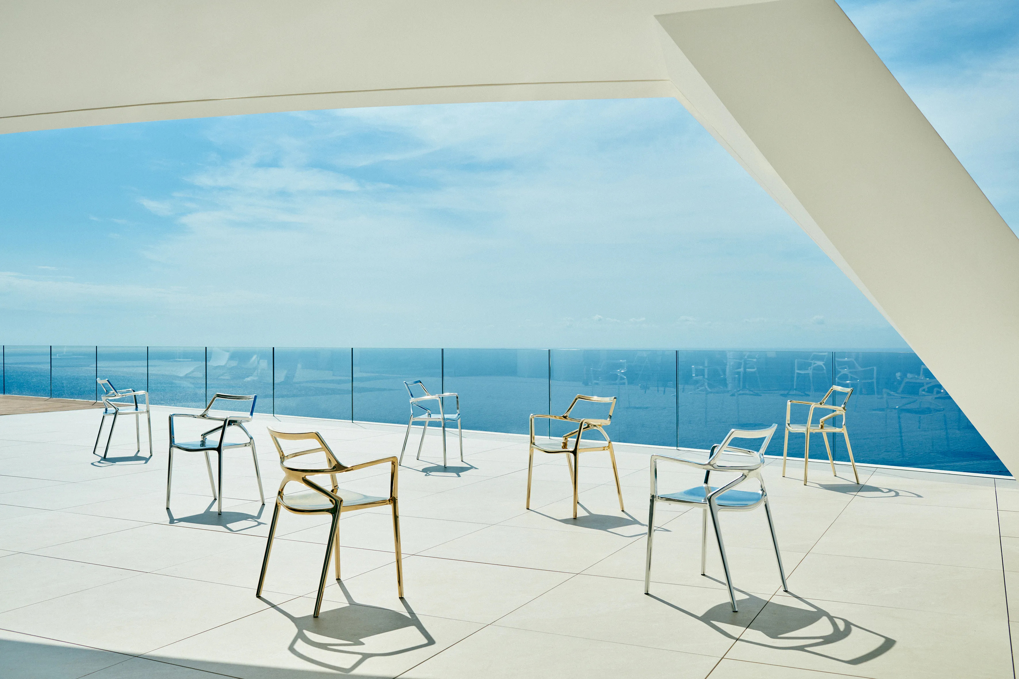 Az új színek, Arany és Ezüst, túllépnek az egyszerűségen, vizuális hatásukkal glamour-t, szépséget, varázst, modernitást és eleganciát kölcsönözve bármely térnek. A Delta kollekció tökéletesen illeszkedik kortárs belső és külső terekbe. Az injektált alumínium alap és az extrudált alumínium oszlop időjárásálló tulajdonságai miatt ideális kültéri használatra. Az összecsukható asztallap és a talp kialakítása lehetővé teszi az asztalok egymás mellé sorolását, helytakarékosság céljából. A DELTA szék célja egy időtálló termék létrehozása volt, amely folyamatosan egyensúlyt keres a realizmus és szürrealizmus, anyag és antianyag, absztrakció és érzelem között. A kollekció célja az érzelmek maximalizálása, miközben a források minimalizálása, megkérdőjelezve az újdonság közös logikáját.
