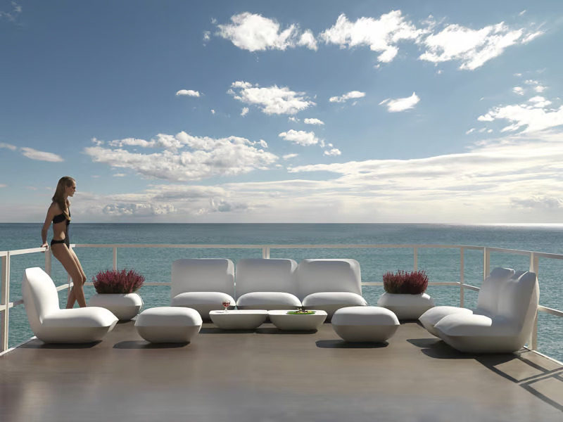 A PILLOW kollekció Stefano Giovannoni tervezésében készült a spanyol VONDOM számára, és magában foglal karosszéket, puffot, asztalt és virágtartót. Giovannoni, a világ egyik legelismertebb tervezője, egyedi bútorgyűjteményt alkotott, amely a párnák által teremtett pihenőhelyet idézi. A mediterrán és meleg dizájn univerzális, és a relaxációt, valamint az élet élvezetét sugallja. A VONDOM termékei, így a PILLOW is, kültéri használatra alkalmasak, még a legszélsőségesebb időjárási körülmények között is, mivel a legmagasabb minőségű PE-ből, rotációs öntéssel készülnek. Ez az exkluzív kültéri ülőgarnitúra, amely elősegíti az emberi kapcsolatokat és a nyugodt beszélgetéseket, ideális választás kerti bútorok, kültéri székek és kültéri kanapék között.