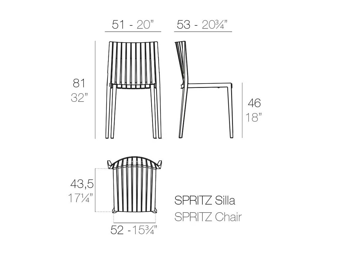 A Spritz kollekciót a tengerparti fehér fa kerítések tökéletes geometriája ihlette. Az Archirivolto által a Vondom számára tervezett sorozat magában foglalja a székeket, karosszékeket, bárszékeket és magas asztalokat, amelyek ideálisak irodák, éttermek, kávézók, oktatási intézmények és konferenciatermek számára. Az étkezőasztalok és design székek modern formavilága a skandináv letisztultságot ötvözi a mediterrán melegséggel, így harmonikus kapcsolatot teremt beltér és kültér között. Az irodai asztalok és kávézó székek injektált polipropilénből készülnek üvegszál erősítéssel, ami tartósságot és könnyű kezelhetőséget biztosít. A termékek több színben elérhetők, és egymásra rakhatók, így rugalmasan alkalmazkodnak a különböző környezetekhez.