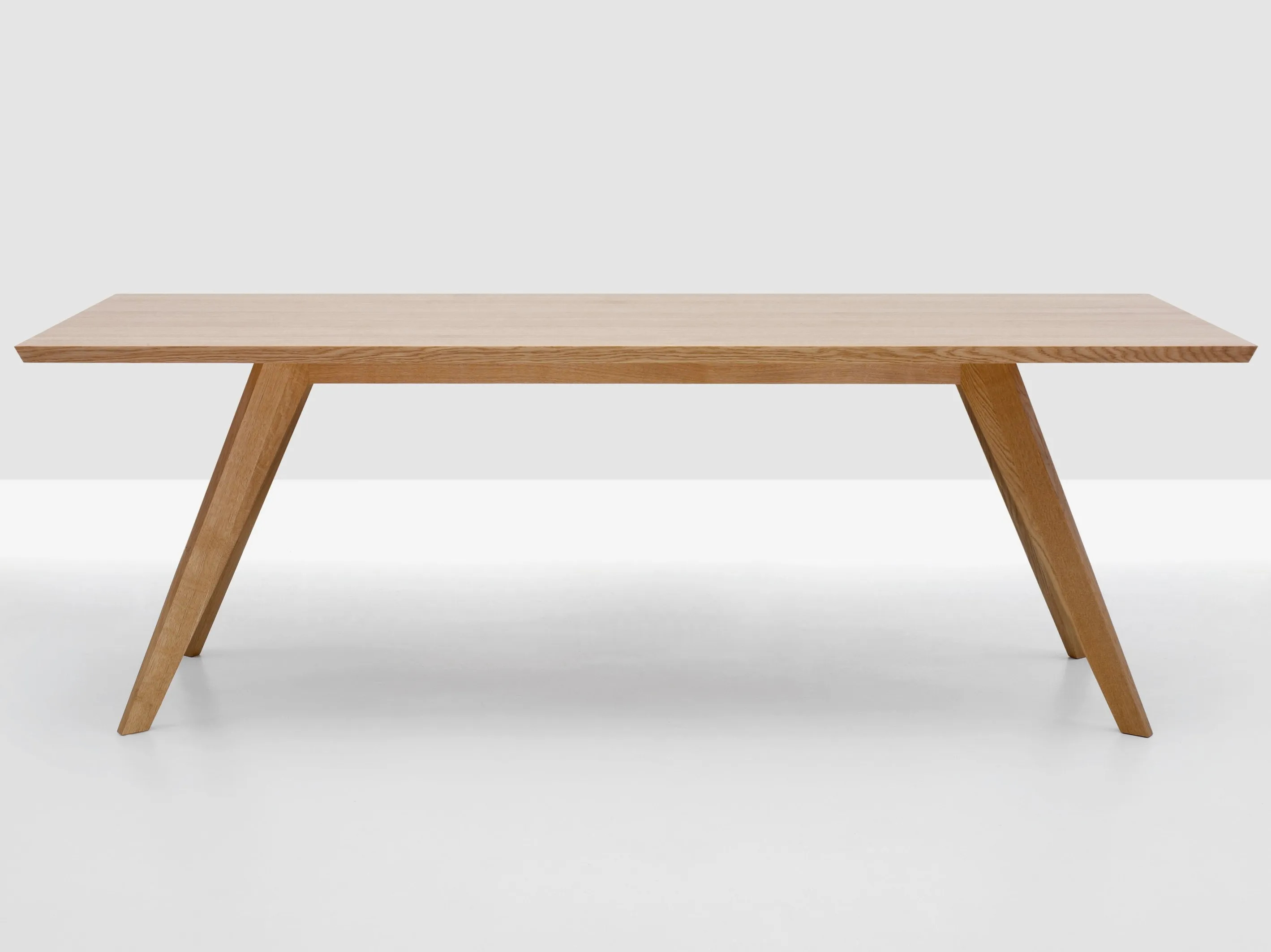 A CENA asztal erős karakterrel rendelkezik, amelyet a ferde asztallap könnyedsége és dinamikája egészít ki, harmonizálva a masszív lábazattal. A kisebb változat kávézóasztalként vagy alkalmi asztalként is funkcionálhat, míg a nagyobb CENA étkezőasztalként szolgál. Az asztallapok különböző formákban érhetők el: téglalap, hiperelliptikus, ovális, kerek és négyzet alakú. A CENA méretei rugalmasan alakíthatók, akár 540 cm × 130 cm-es téglalap, 240 cm × 240 cm-es négyzet, vagy Ø 240 cm-es kerek formátumok is megvalósíthatók. Anyaga tömör fa, például fehérre olajozott kőris, tölgy, amerikai cseresznye és dió. A felület természetes olajokkal és viaszokkal impregnált, a tölgy színű változat matt lakkozott. Szerződéses felhasználásra DD-lakk bevonat javasolt az asztallapokon.