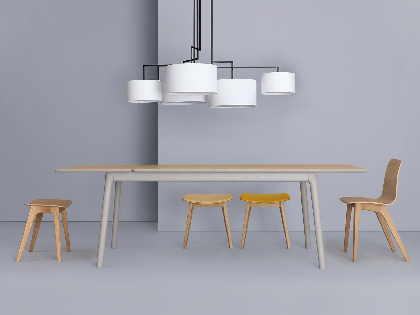 Az E8 LONGUE egy bővíthető változata a standard E8 asztalnak, amely ideális választás irodák, éttermek, kávézók és konferenciatermek számára. Az étkezőasztal elegáns megjelenését a rejtett bővítési mechanizmus biztosítja, amely lehetővé teszi, hogy a vékony asztallap két további ülőhelyet biztosítson. Az asztallap és a bővítmény egyetlen fadarabból készül, így a fa erezete és az élek szimmetriája harmonikus összképet nyújt. A bővítési mechanizmus fém sínre épül, amely az asztallap aljába van ágyazva, lehetővé téve a fa természetes mozgását. Az E8 LONGUE a klasszikus kihúzható mechanizmus modern interpretációja, precíziós gyártási technológiával. Anyagválaszték: tömör tölgy vagy amerikai dió, természetes vagy színezett kivitelben. Felületkezelés: természetes olajokkal és viaszokkal impregnált, vagy matt lakkozott.