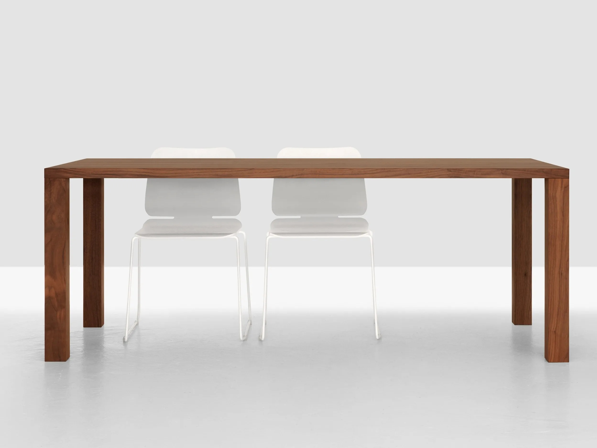 A PJUR étkezőasztal a funkcionalitás megtestesítője, amely irodai asztalként is kiválóan alkalmazható. Az erős, sarokba helyezett lábak stabilitást biztosítanak, miközben a letisztult design lehetővé teszi, hogy bármilyen környezetbe könnyedén illeszkedjen, legyen az étterem, kávézó vagy konferenciaterem. A keret nélküli asztallap maximális lábteret biztosít. Anyaga tömör fa, elérhető fehér olajozott kőris, tölgy, csomós tölgy, amerikai cseresznye, amerikai dió és európai dió változatokban, akár 240 cm-es méretig. A felület természetes olajokkal és viaszokkal impregnált, a tölgy színű változat matt lakkozott. Szerződéses felhasználásra lakkozott felületet javaslunk. Különböző méretekben és bővíthető változatban is kapható, rozsdamentes acél támasztékkal.