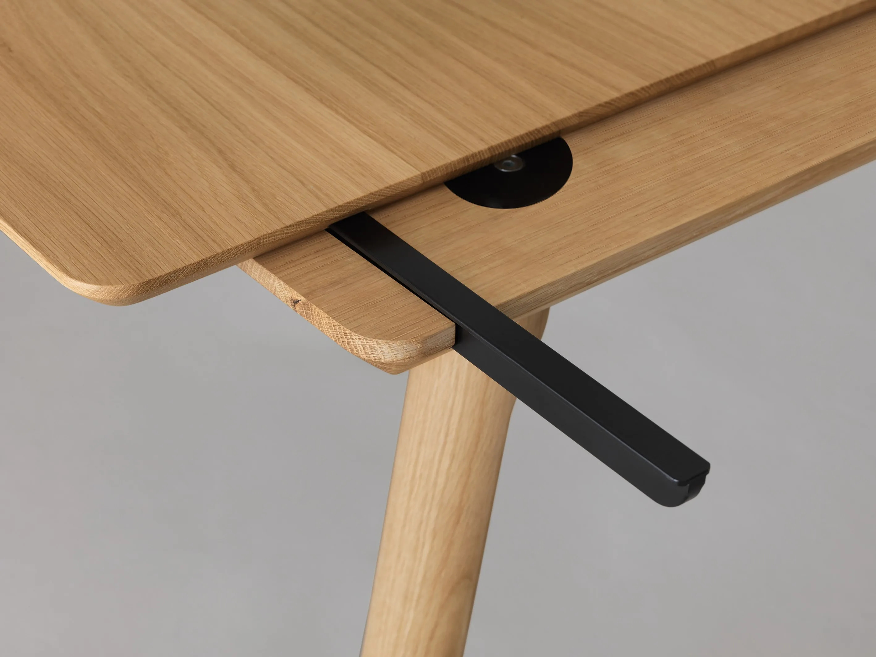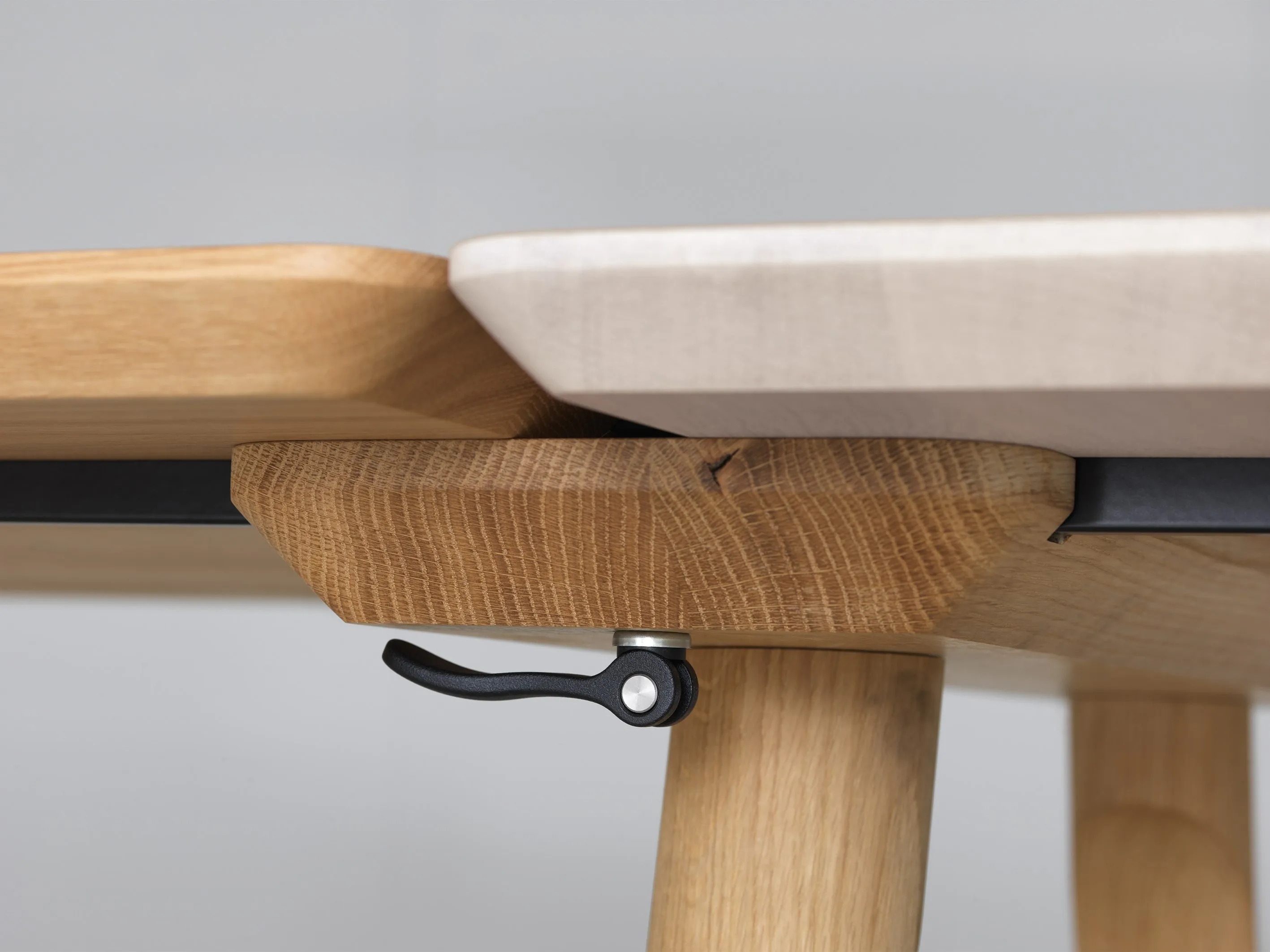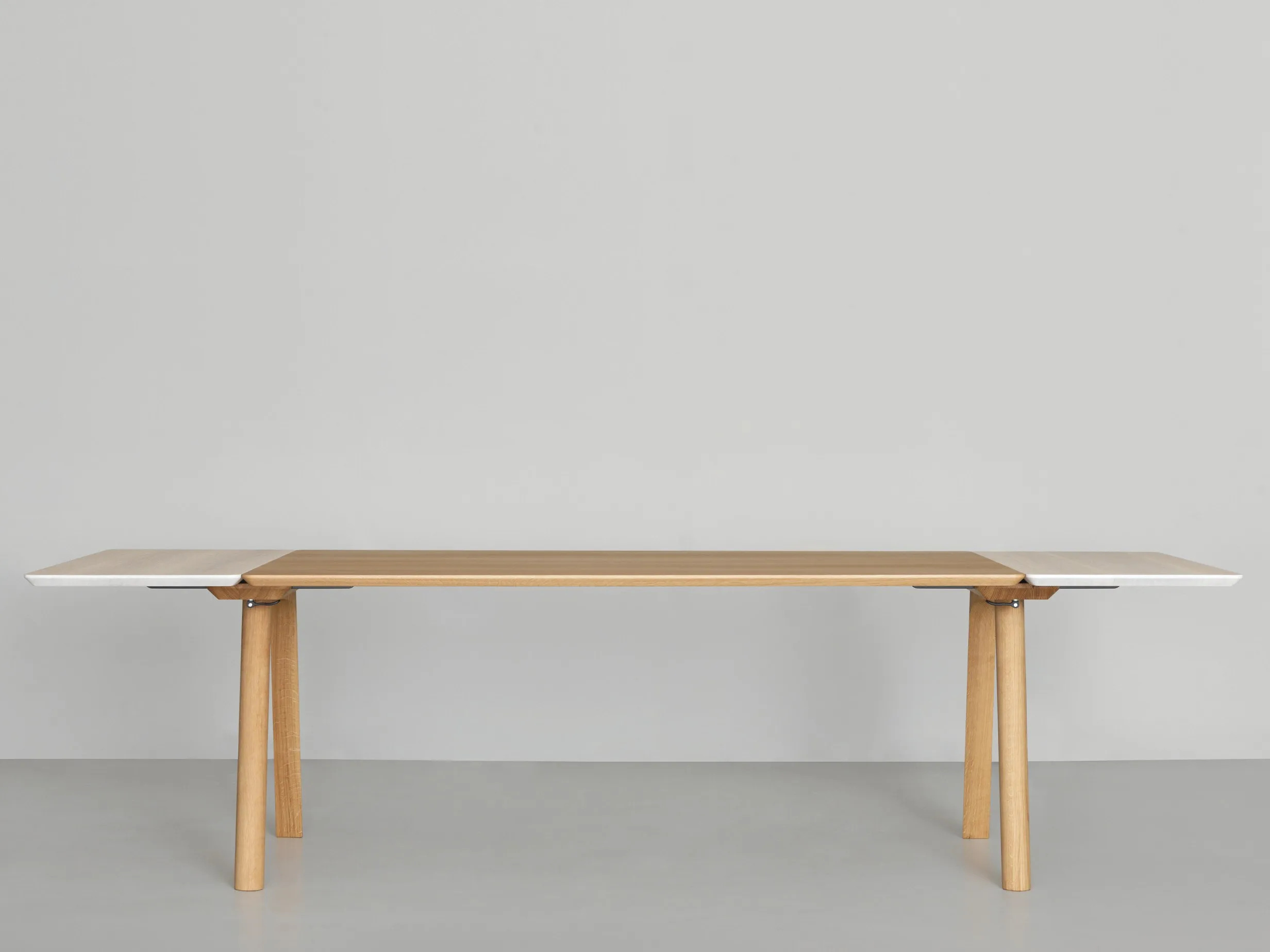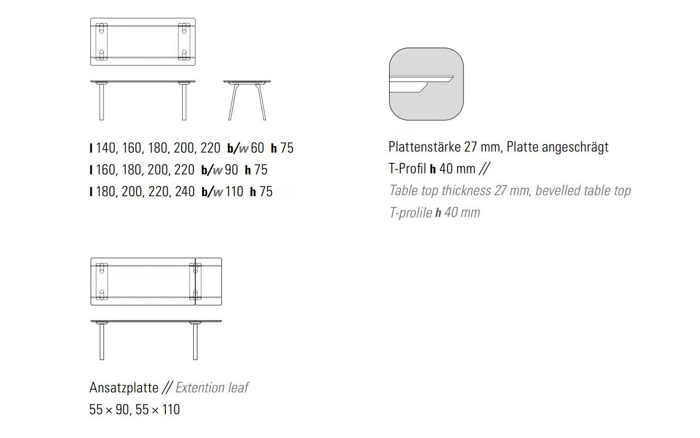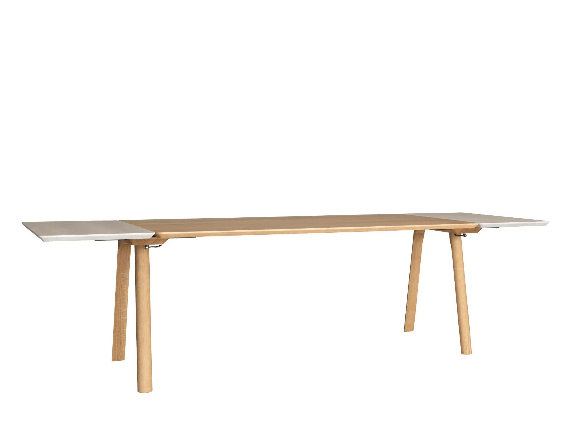 A RAIL étkezőasztal letisztult stúdió karakterrel rendelkezik, amely könnyedséget és egyszerűséget sugároz a keret nélküli asztallap révén. Az asztal bakjainak szerkezete látható, és opcionálisan bővítőlapokkal mindkét oldalán meghosszabbítható. A bővítéshez a bakokat a középpont felé kell tolni, hogy alátámasszák a bővítőlapot. Az asztallap anyaga lehet tömör fa, például fehérre olajozott kőris, tölgy, csomós tölgy, amerikai dió, vagy rétegelt nyír linóleummal. A felület természetes olajokkal és viaszokkal impregnált, a tölgy színű változat matt lakkozott. Szerelhető kivitelben kapható, a bakok T-profilú és gyorskioldó szerelőkészlettel érkeznek. Ideális választás modern asztalok, irodai asztalok, design székek és kávézó székek mellé.