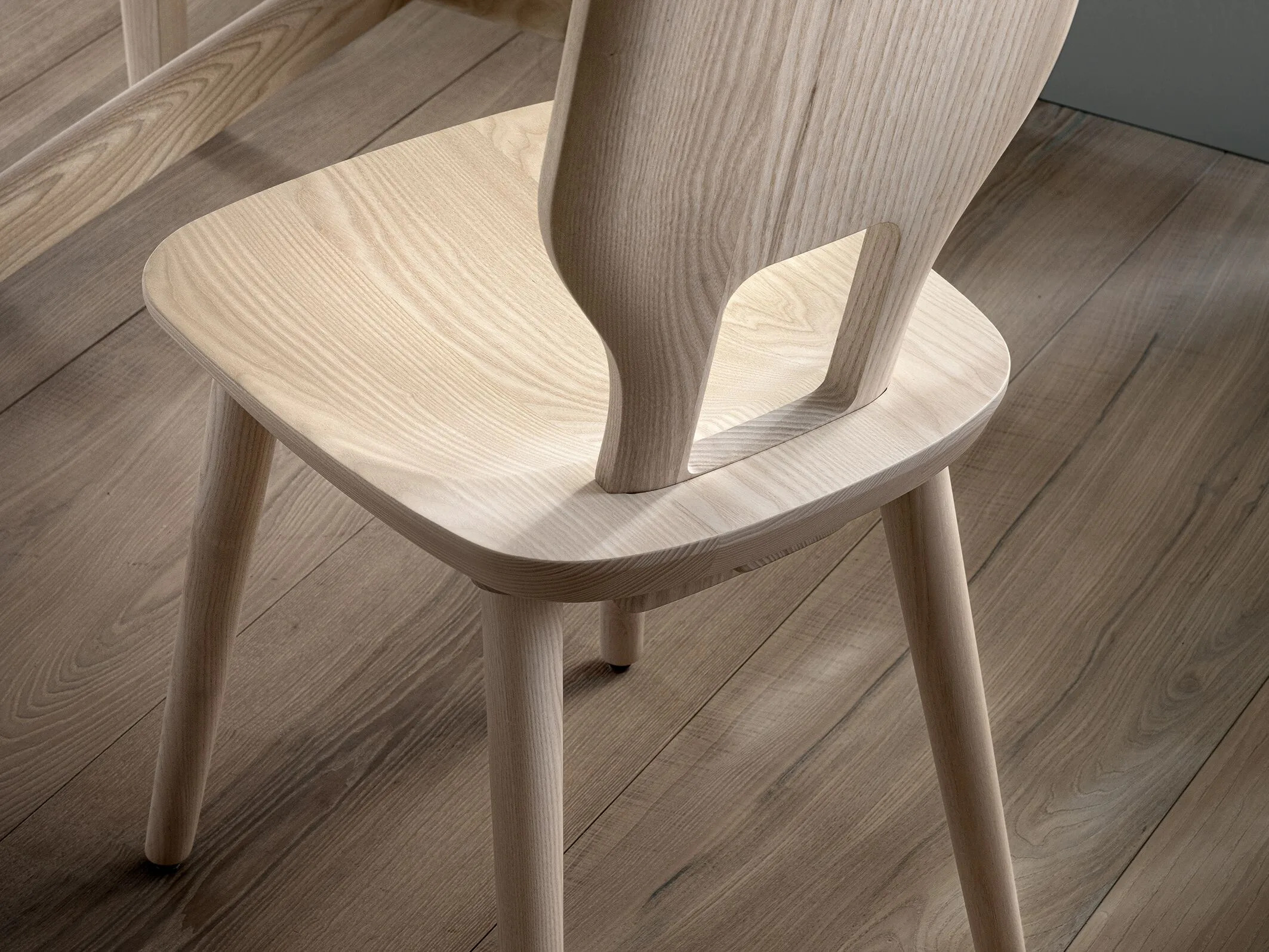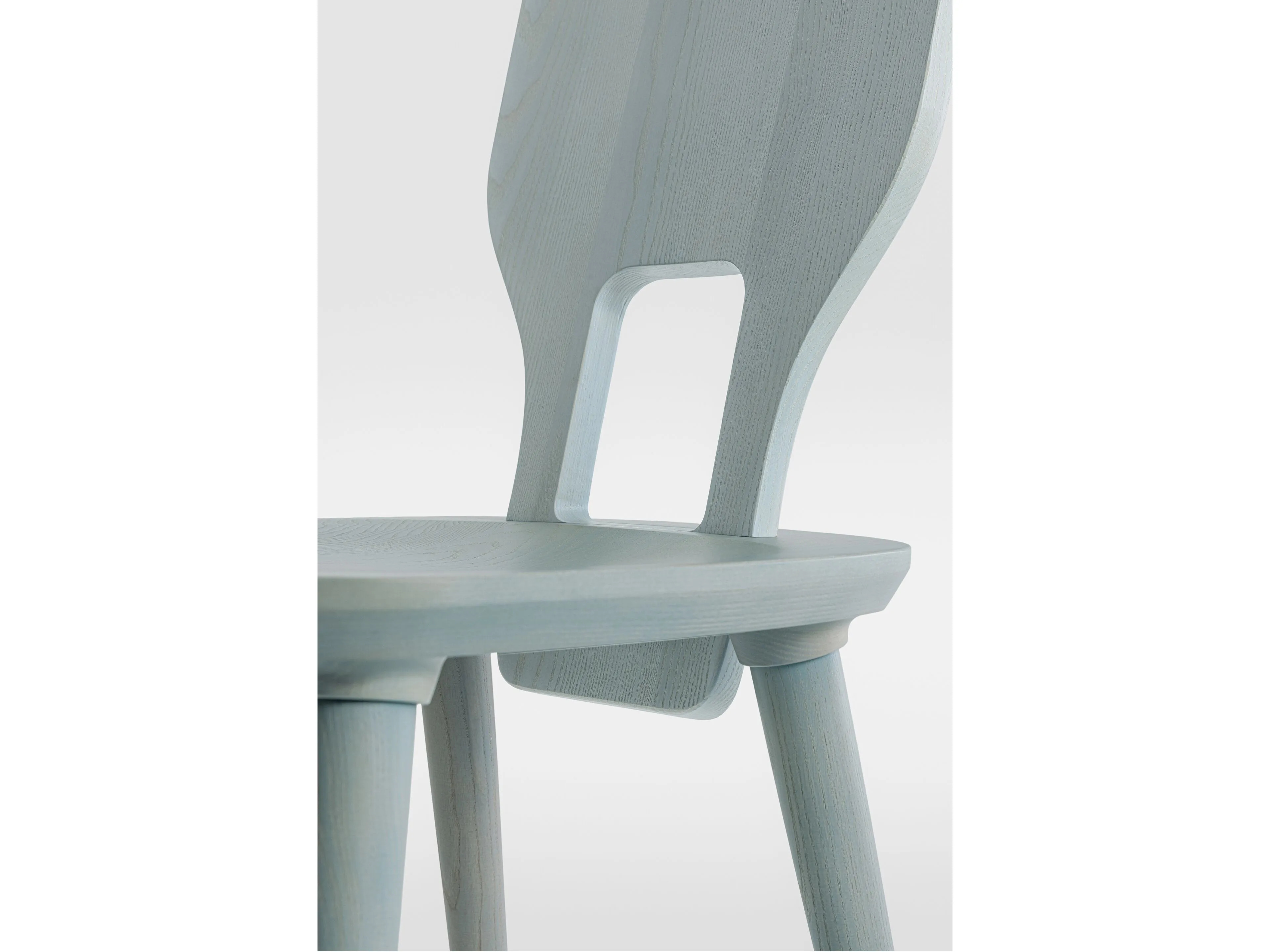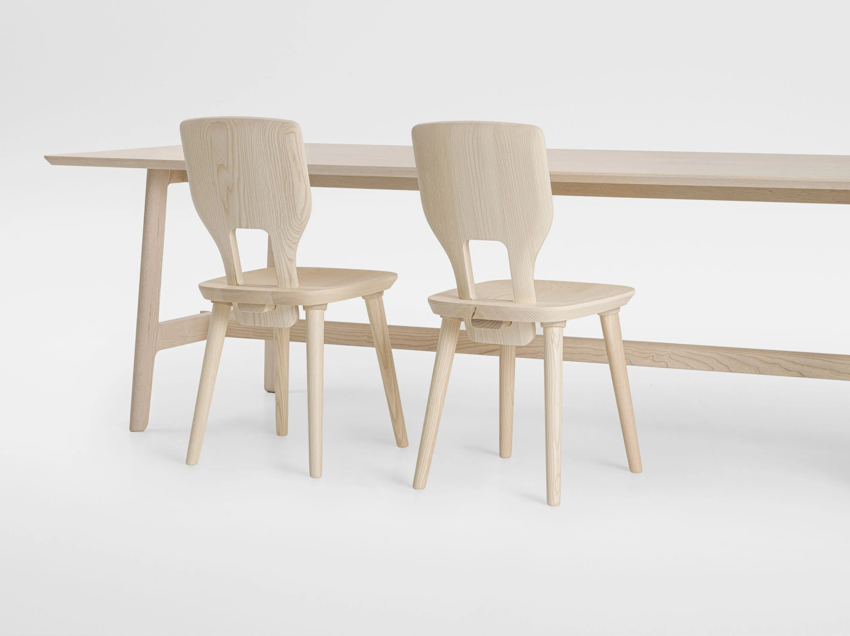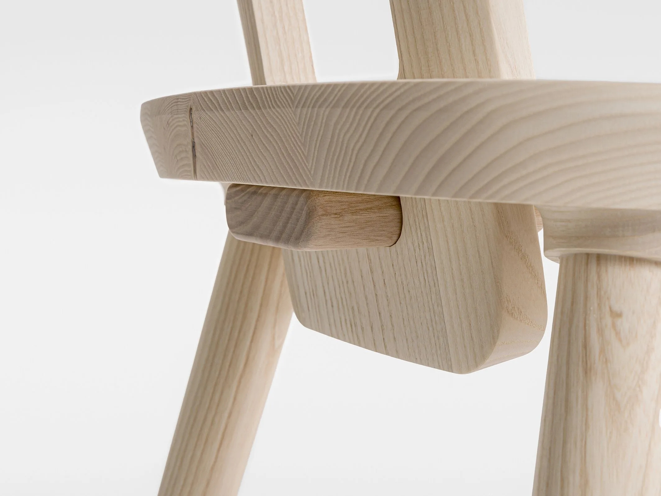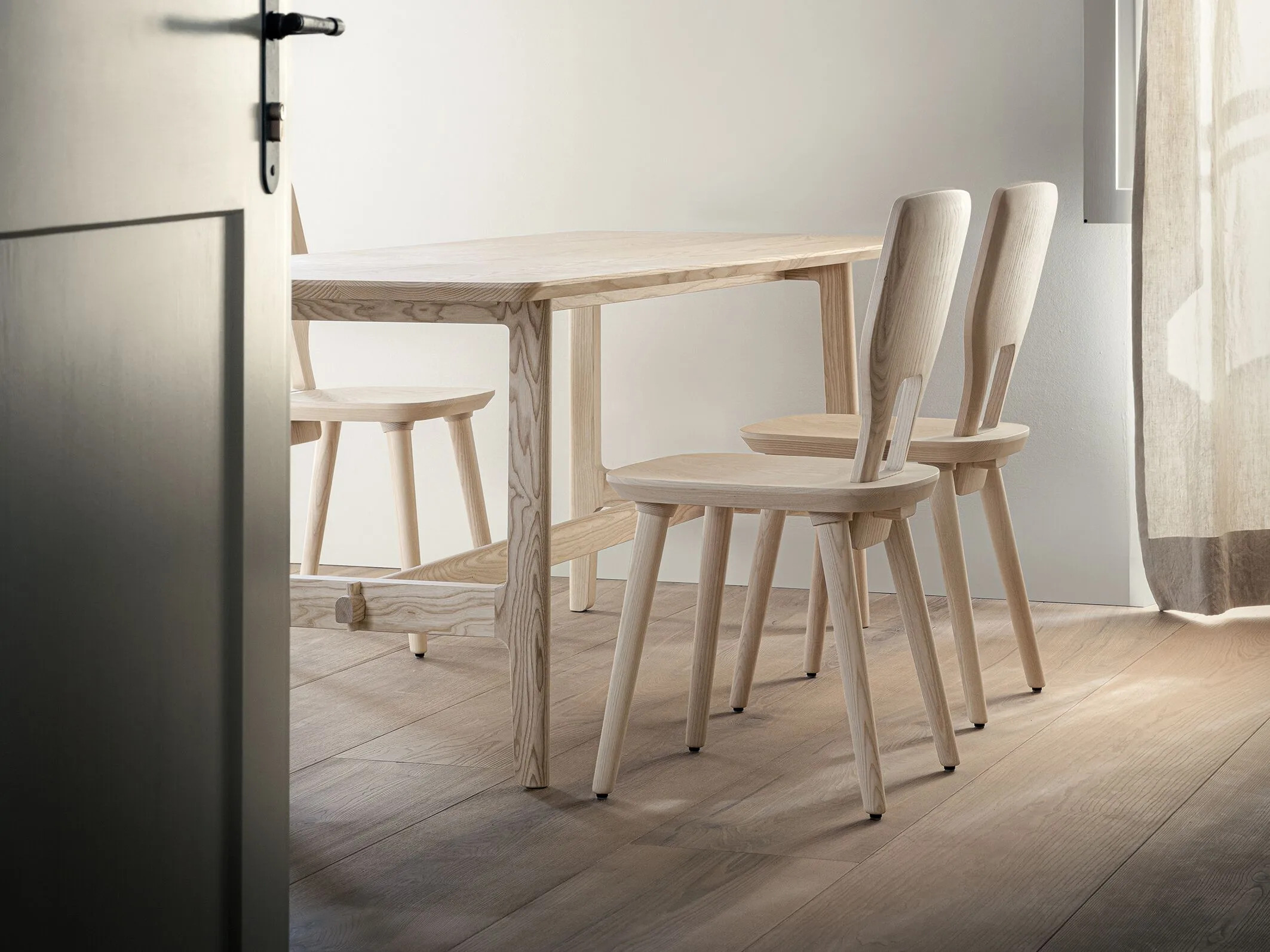 A VNA CHAIR a Stabelle székek közé tartozik, amelyeket az Alpok hagyományos kézművessége ihletett. Az Engadin egy kis hegyi falujáról kapta a nevét, ahol Florian Hauswirth és a ZEITRAUM találkozott a projekt kezdetén. A hegyvidéki régiókban a mindennapi tárgyakat helyi mesterek vagy ügyes gazdák készítették elérhető anyagokból. Az étkezőasztalok és design székek egyszerűen és masszívan, díszítésekkel készültek. Az ALPENRAUM kollekció ezt a logikát követi, de modern CNC technológiával gyártják. Az érthető konstrukció a „összerakás”, az áthatolás és az egyesülés témáját dolgozza fel. Az ellentétes és lágy kontúrok a fa szerkezetére utalnak, harmonikus összképet alkotva. Az ipari gyártás során megőrzött kézműves karakter a jelenbe hozza a „kompozitot”. Anyag: fehérre olajozott kőris, füstkék és grafitfekete kőris színű pác. Felület: természetes keményviasz-olajjal impregnált, matt lakkozott kőris színű pác.