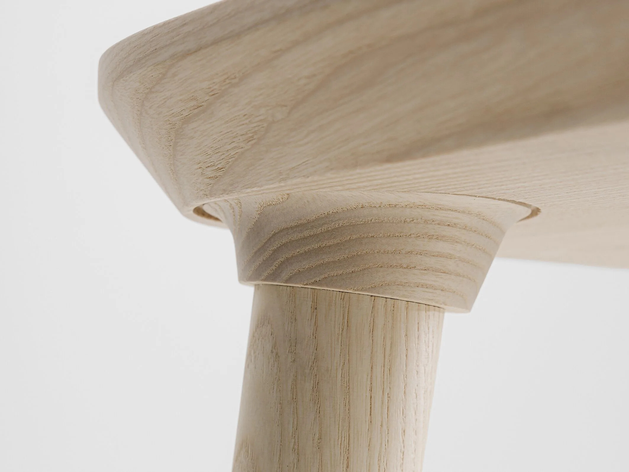 A VNA STOOL egy sokoldalú bútordarab, amely különböző kultúrákban, például Japánban, a mindennapi élet része. Az Alpok régiójában elengedhetetlen, és praktikus kialakításának köszönhetően egyszerű ülőhelyet biztosít különböző helyszíneken, legyen az étkezőasztal körül, irodai asztal mellett, vagy modern asztalok környezetében. Háttámla nélküli kialakítása és süllyesztett fogantyúja révén könnyen mozgatható, így ideális választás kávézó székek vagy tárgyalótermek számára. A kézművesség itt nem csupán anyagok ügyes feldolgozását jelenti, hanem a design és a térhatás megtestesülését is. Az anyaghasználat magában foglalja a fehérre olajozott kőrist, füstkék és grafitfekete színű kőris pácot, felülete pedig természetes keményviasz-olajjal impregnált, matt lakkozással.