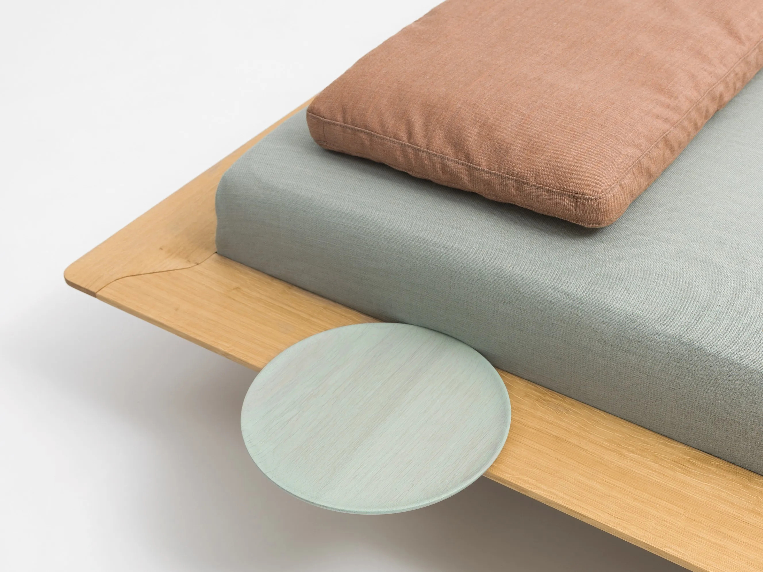 A YOMA ágy különleges megjelenését a lebegő hatású, alacsony keret adja. A hosszanti oldal polcként is funkcionál, a hullám alakú fa csatlakozás pedig a kézműves munka részleteit tükrözi. A lekerekített sarkok lágy és hívogató megjelenést kölcsönöznek, míg a matrac csak néhány centimétert süllyed, mintha a tetején feküdne. A háttámlapok több pozícióban rögzíthetők, így a YOMA ágy sokoldalúan alakítható a pihenés, olvasás vagy alvás igényei szerint. A szabadon elhelyezhető YOMA Plate oldalasztal grafikus hangsúlyt ad a térnek. Az ágykeret és az asztal tömör fából készül, különböző felületekkel, mint például fehérre olajozott kőris, tölgy, amerikai cseresznye és dió. Az integrált ágyrács rendszer és a különböző támasztó profilok biztosítják a stabilitást, ideális választás gyerekágyak, hálószoba bútorok és gyerekszoba dekoráció céljára, különösen szálláshely bútorozás esetén.