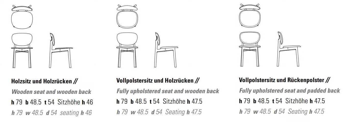 A ZENSO székek a Formstelle tervezőpáros alkotásai, melyek szoborszerű megjelenésükkel tűnnek ki. Az Enso motívumot követve, a székek körkörös formái a japán kalligráfia egyik leggyakoribb szimbólumát idézik, amely a megvilágosodást és az eleganciát jelképezi. Az esztétikus fa keret két lebegő kört foglal magában: az ülőfelületet és a háttámlát. A keret tömör fából készül, míg az ülés és a háttámla formázott fából van, és igény szerint kárpitozható. Az ülés mindig teljesen kárpitozott, a háttámla pedig párnázott. A ZENSO különböző változatokban elérhető: fa ülő- és háttámlával, teljesen kárpitozott ülő- és háttámlával, vagy kárpitozott ülőfelülettel és fa háttámlával. A székek matt lakkozott felülettel rendelkeznek, és különböző anyagokkal, például szövettel vagy bőrrel kárpitozhatók.